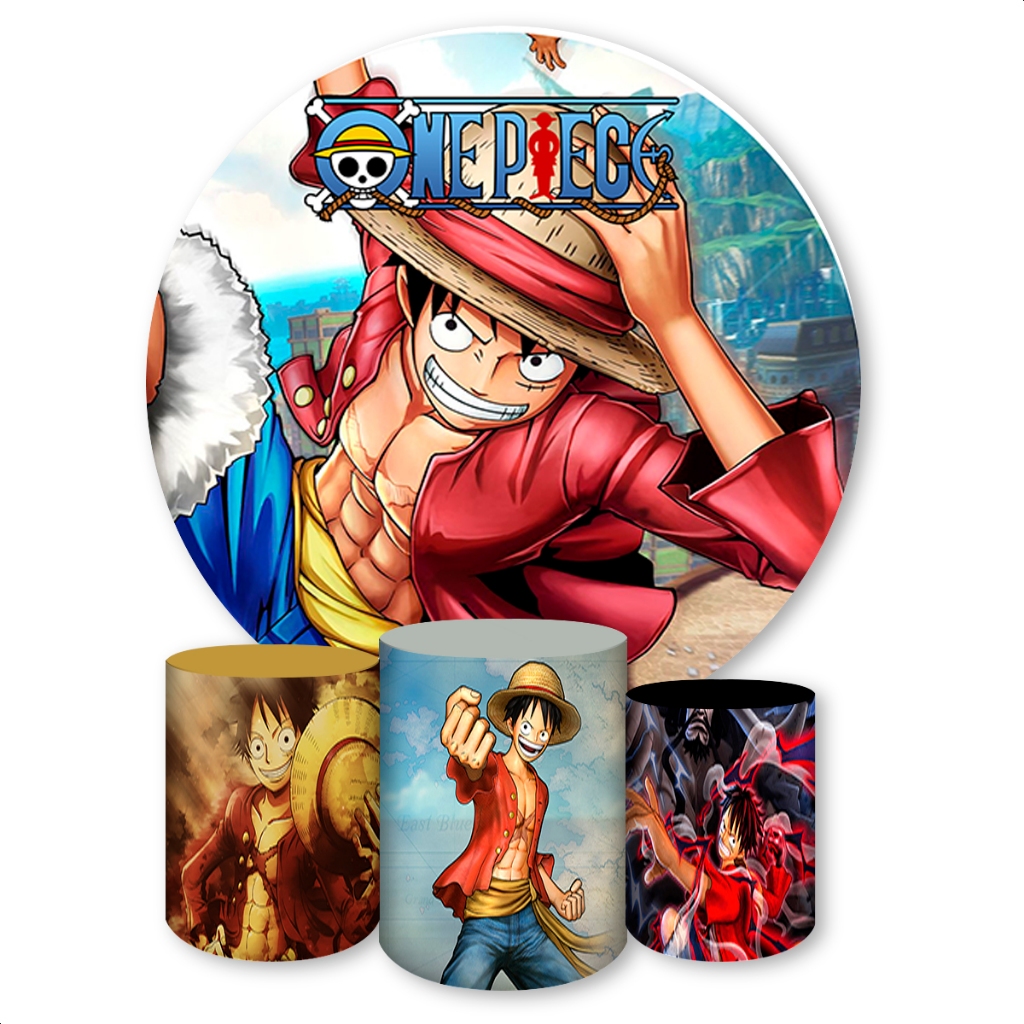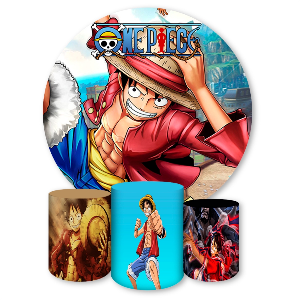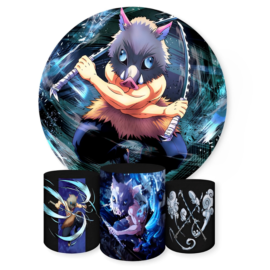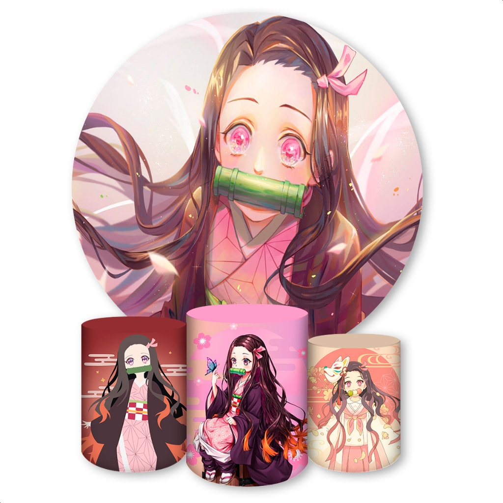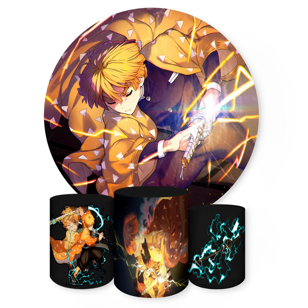 Capa Painel Redondo + Capas de Cilindro Sublimados Veste Fácil Para Festas Tema Animes Diversos