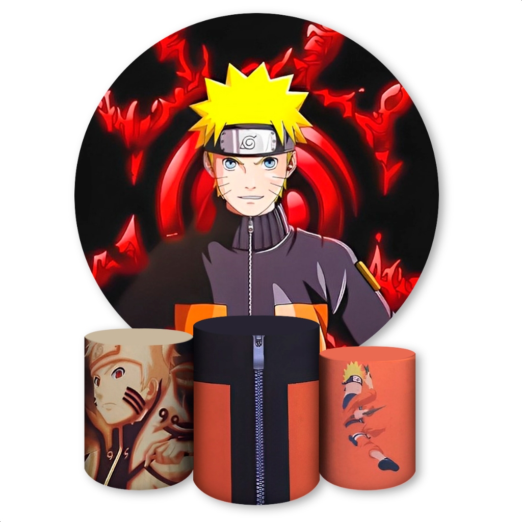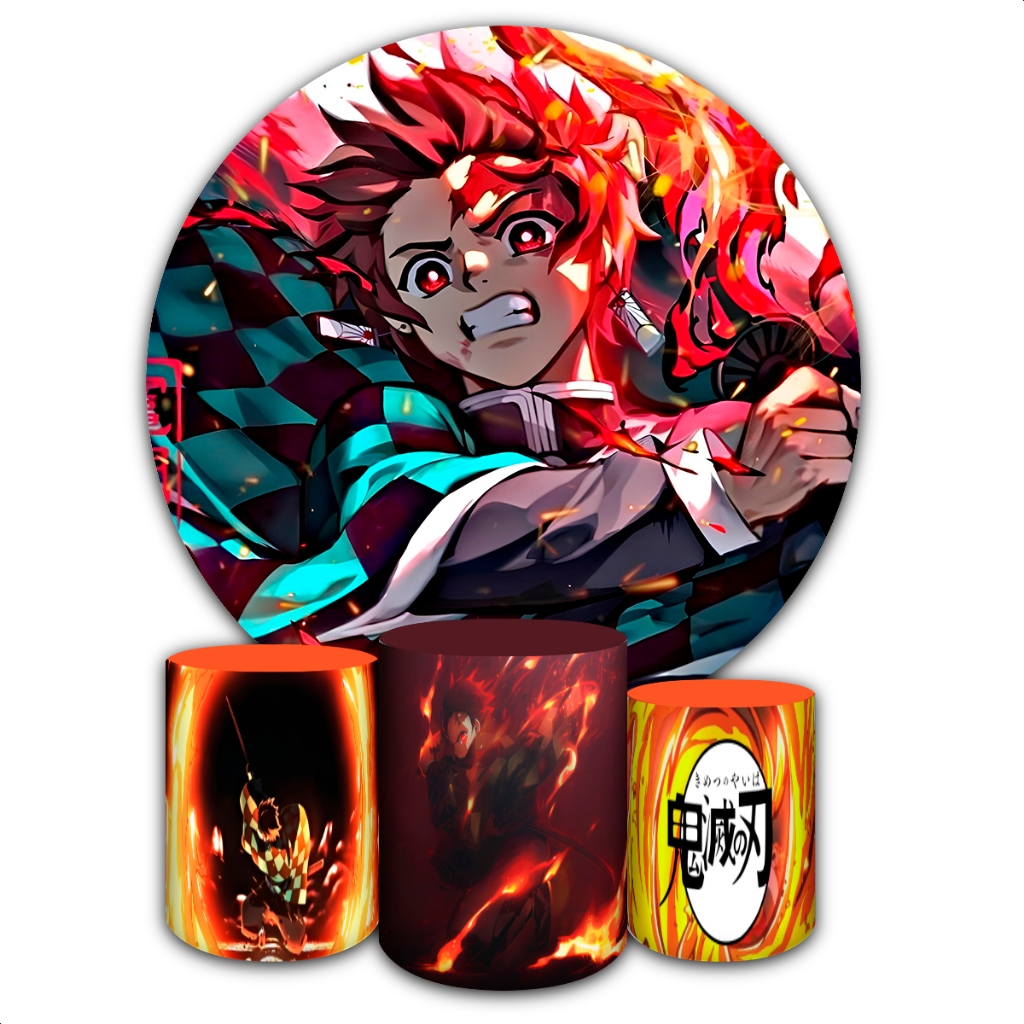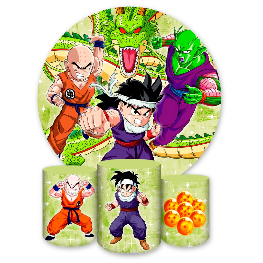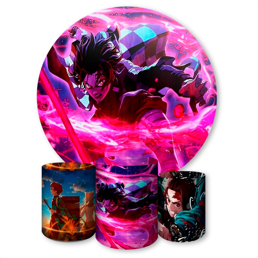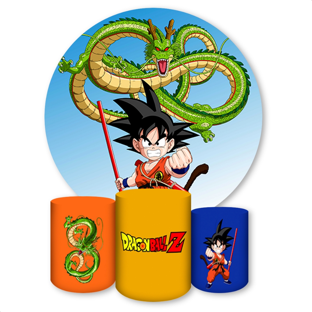Capa Painel Redondo + Capas de Cilindro Sublimados Veste Fácil Para Festas Tema Animes Diversos