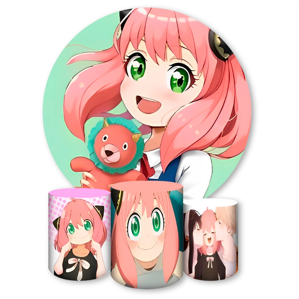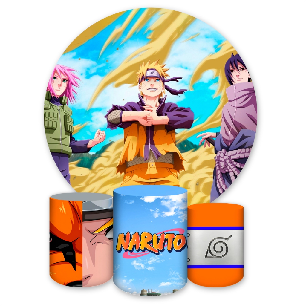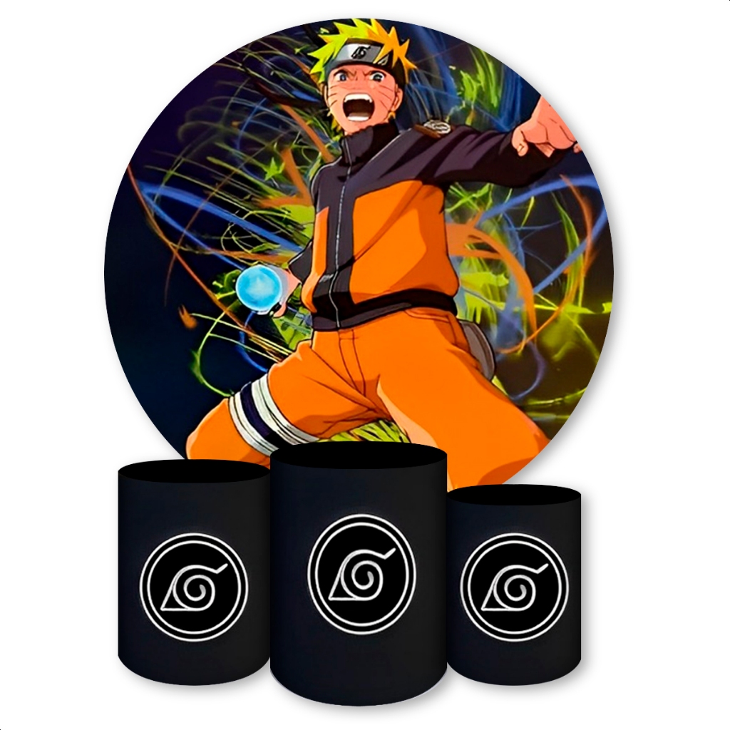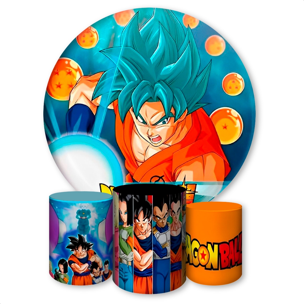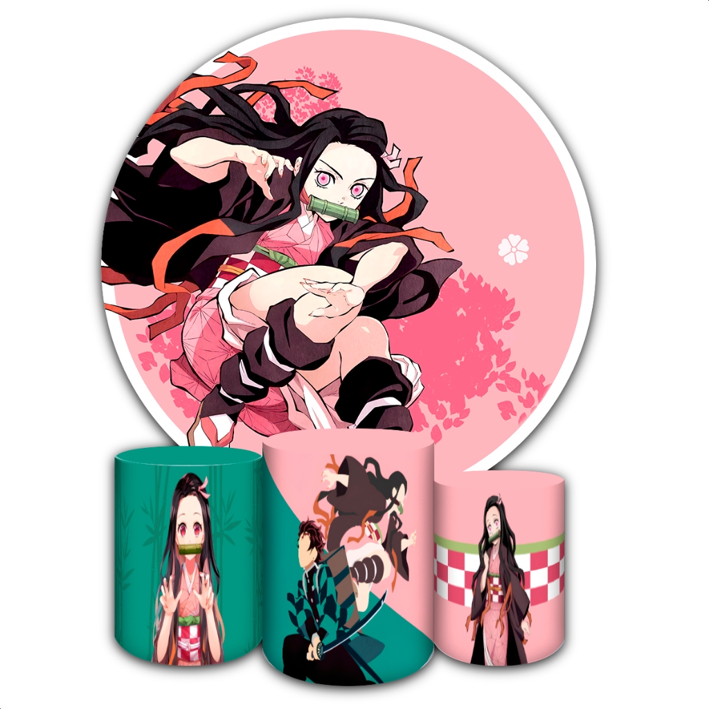 Capa Painel Redondo + Capas de Cilindro Sublimados Veste Fácil Para Festas Tema Animes Diversos