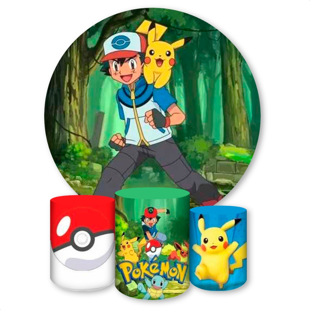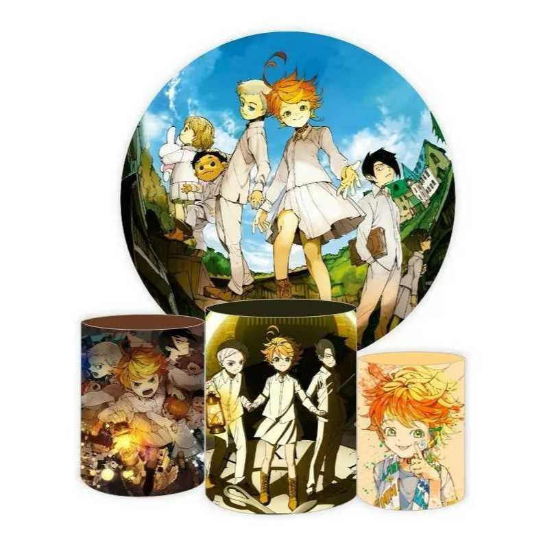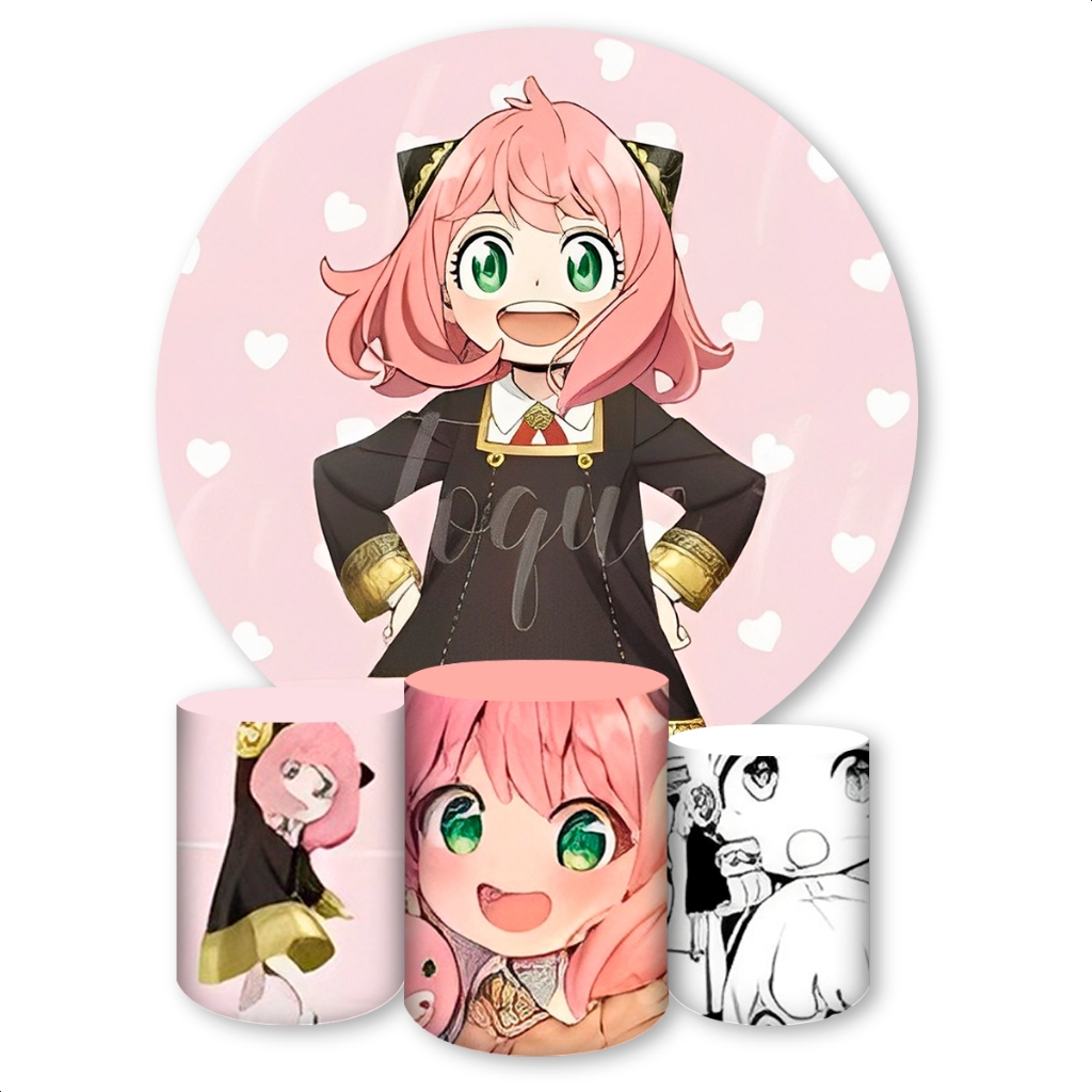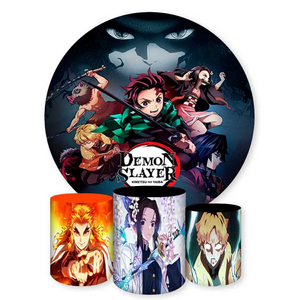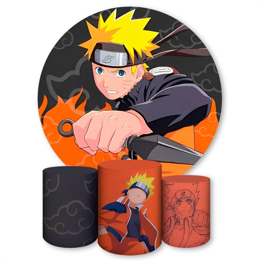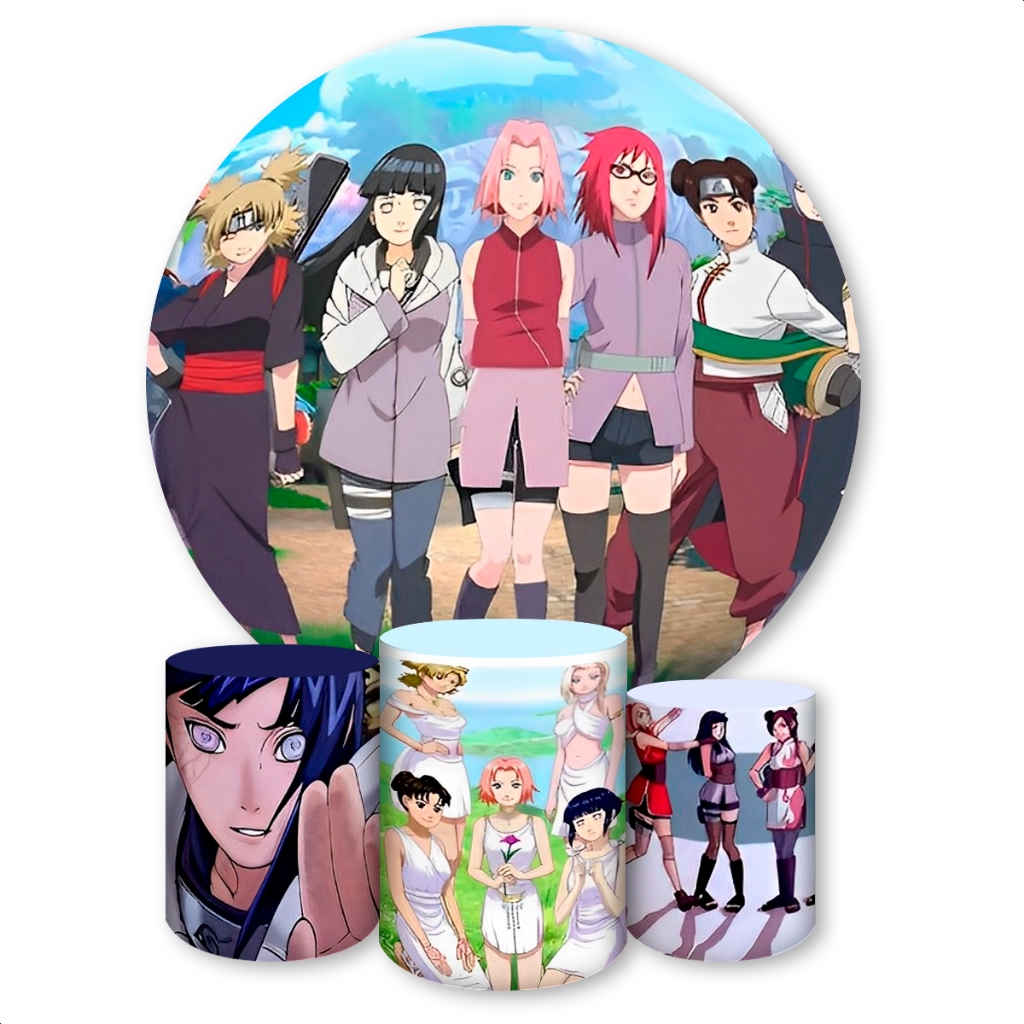 Capa Painel Redondo + Capas de Cilindro Sublimados Veste Fácil Para Festas Tema Animes Diversos