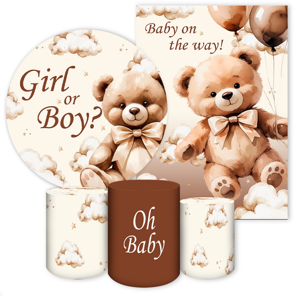 kits Para Festa, Capas Sublimadas P/ Painéis Vários Modelos Tema Ursinho Cute Chá Revelação