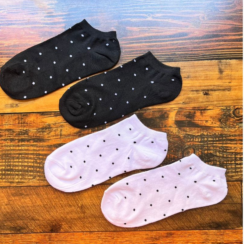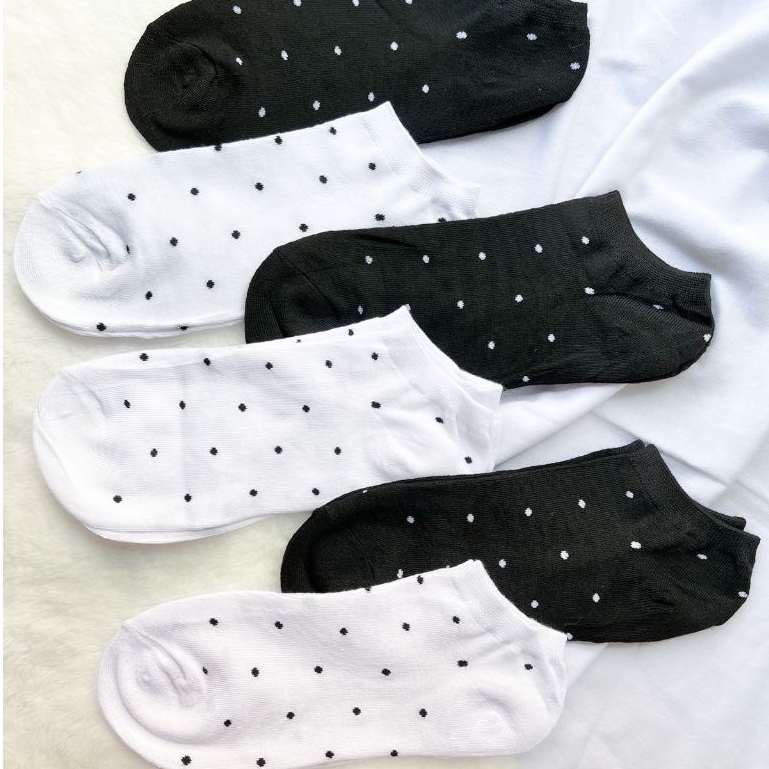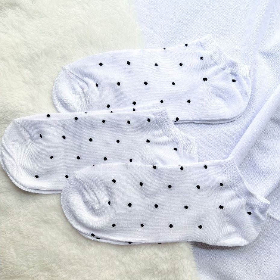 Kit 9 Pares de Meia Poá Feminina Conforto Estampa de Bolinha Delicada Preta e Branca