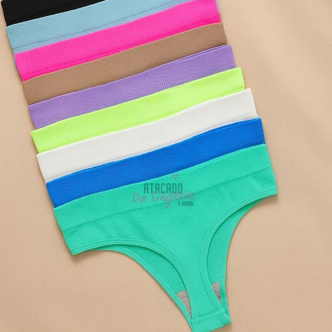 Kit 6/3/2 Calcinha Fio Textura Canelada Poliamida Moda Lingerie Feminina Conforto