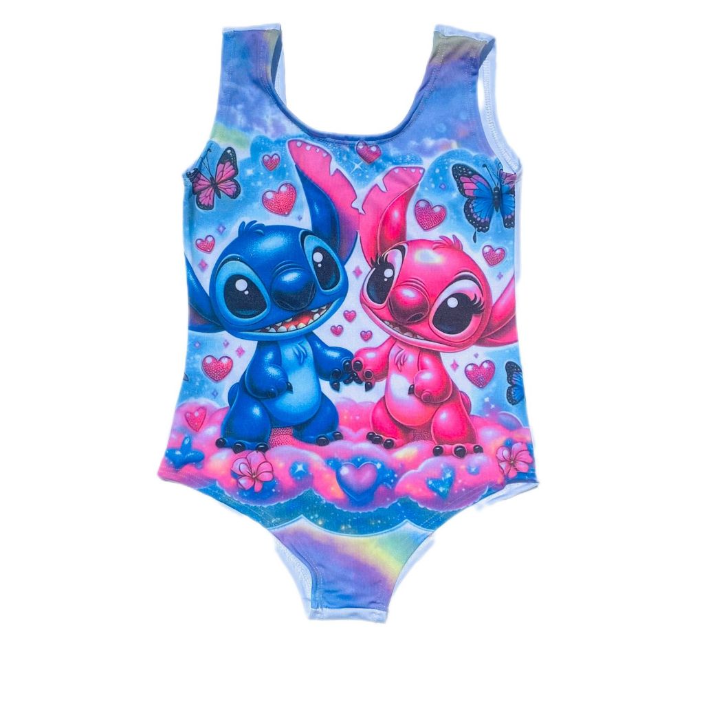 Body Infantil Lilo & Stitch Personagem Menina Verão Maiô Regata Festa Fantasia Angel Bodi Temático Bori Praia Piscina