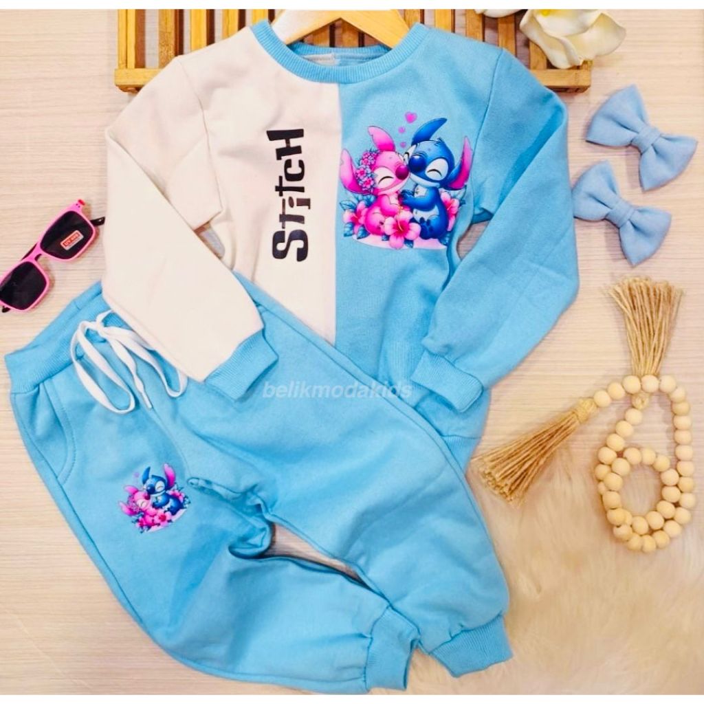 Conjunto Infantil Lilo Stitch Moletom Blusa + Calça Inverno Frio Menina Blogueirinha Quentinho 4 Ao 10 Confortável Macio