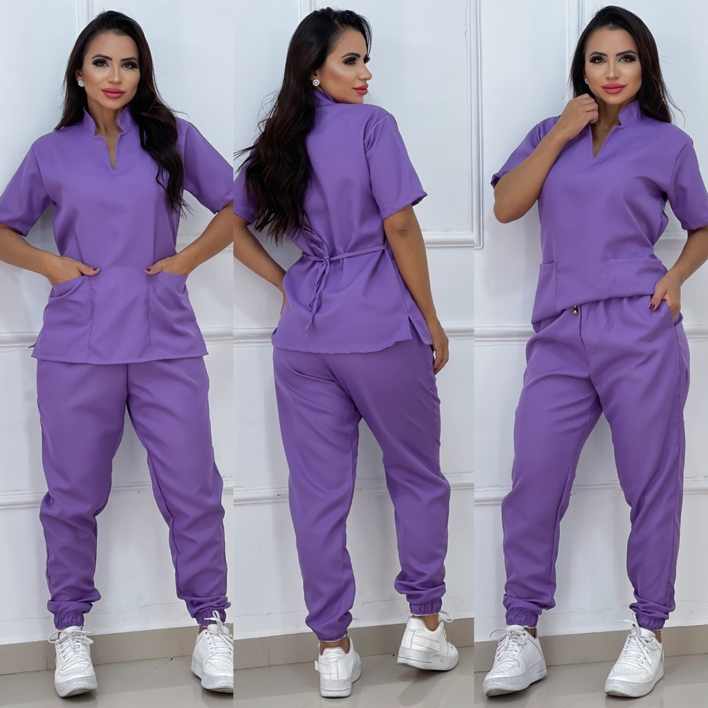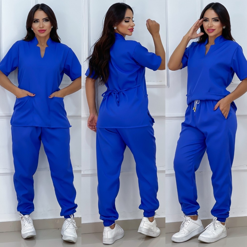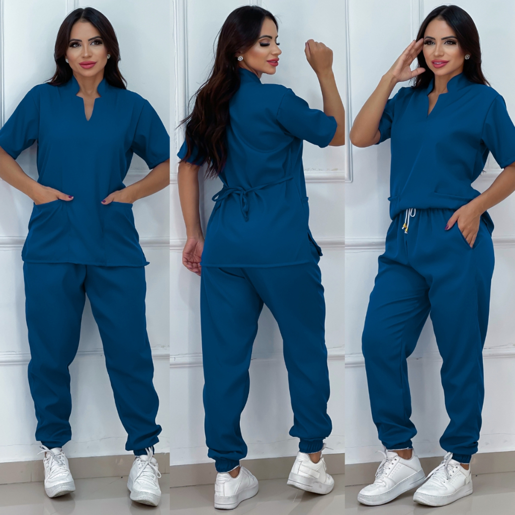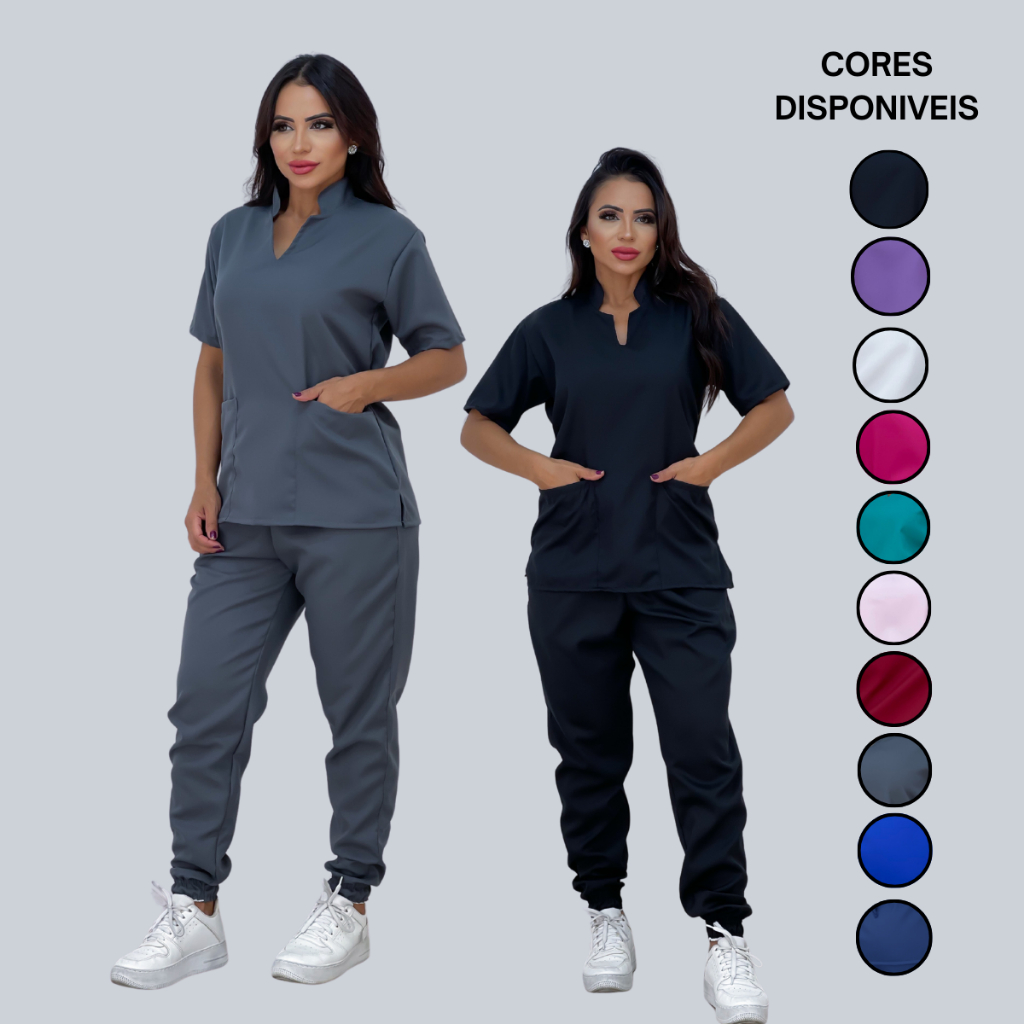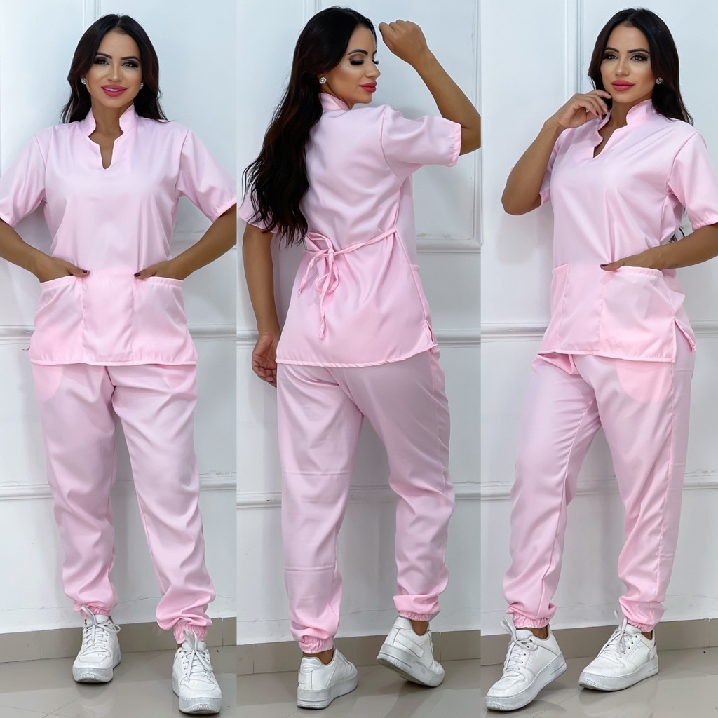 Pijama Cirúrgico Hospital Clinica Scrub Acinturado Uniforme profissional Gola Padre Elegante Linha Premium