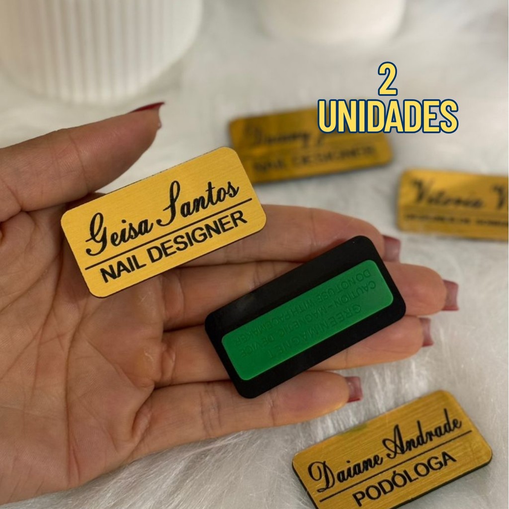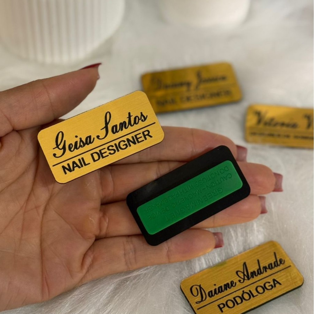 Broche Crachá Personalizado Magnético Nome E Profissão Dourado Escovado Para Empresa, Clinica ou Formatura