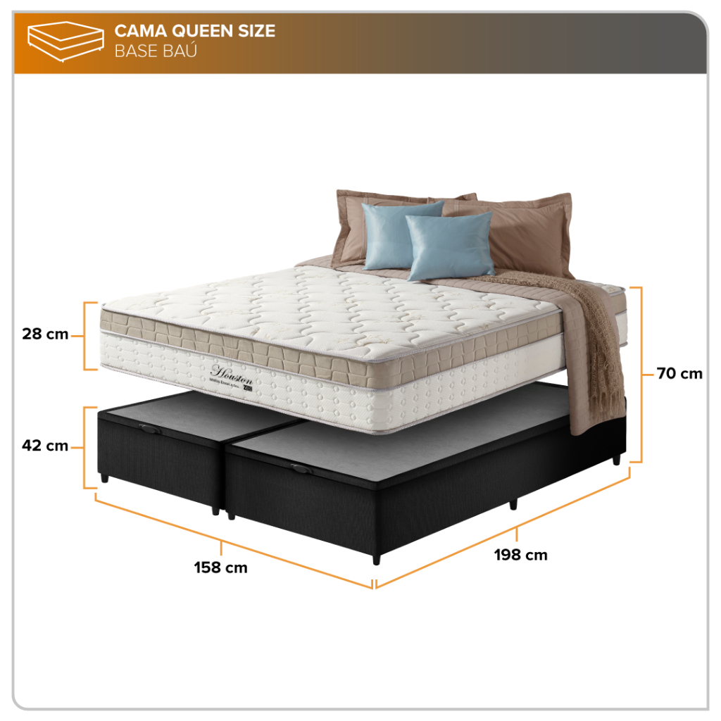 Cama Box Baú Queen Preto + Colchão Molas Ensacadas Houston Pillow Inn 158x198x70cm