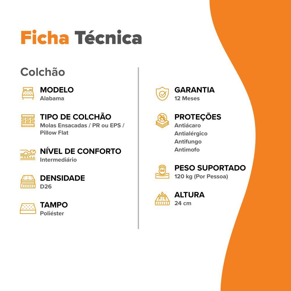 Colchão Solteiro Molas Ensacadas Zidi Alabama 88x188x24cm
