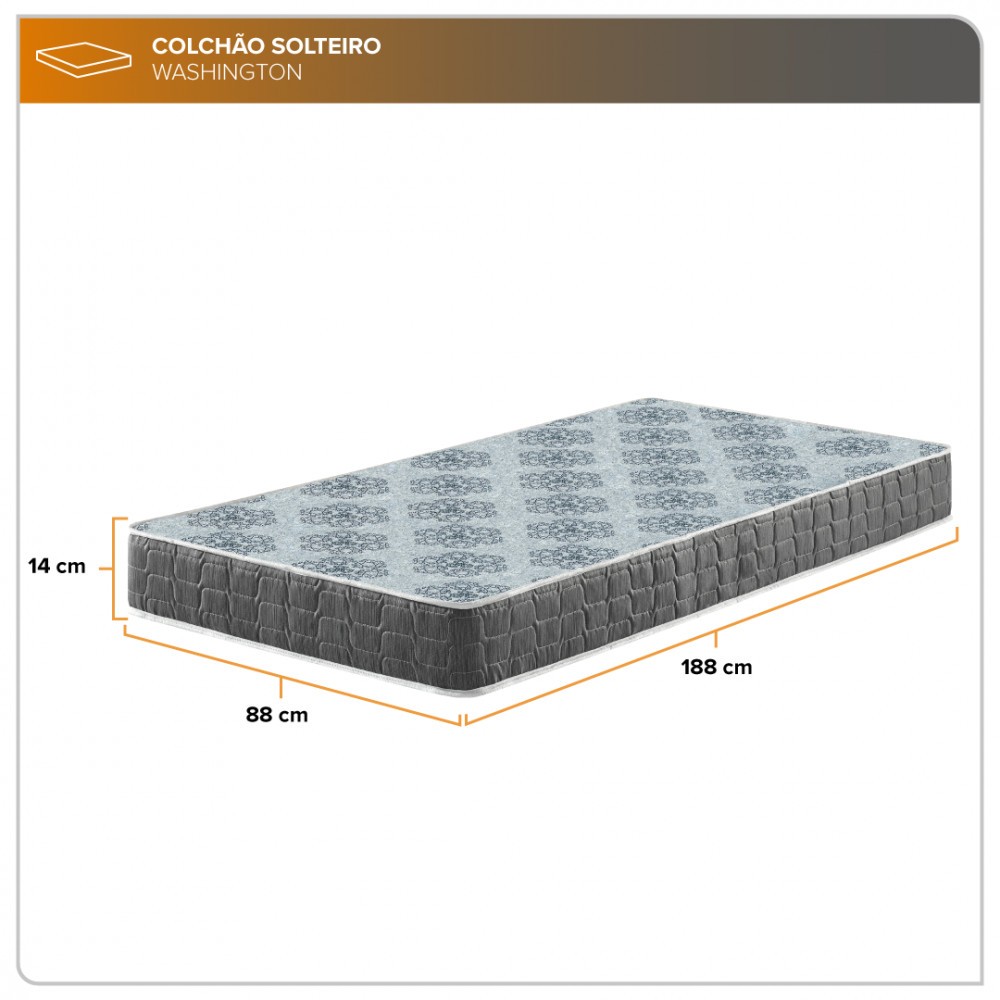 Colchão Solteiro Washington Espuma D23 Liso 88x188x14cm