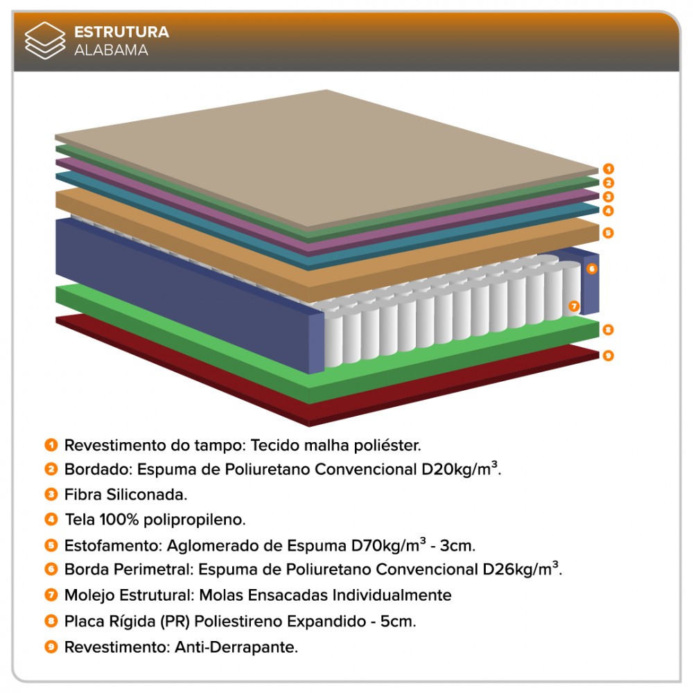Colchão Solteiro Twin Size Molas Ensacadas Alabama 96x203x24cm