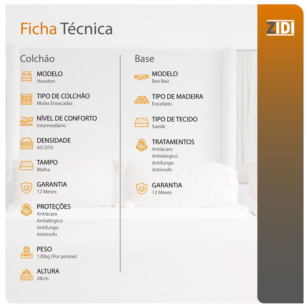 Cama Box Baú King Preto + Colchão Molas Ensacadas Houston Pillow Inn 193x203x70cm