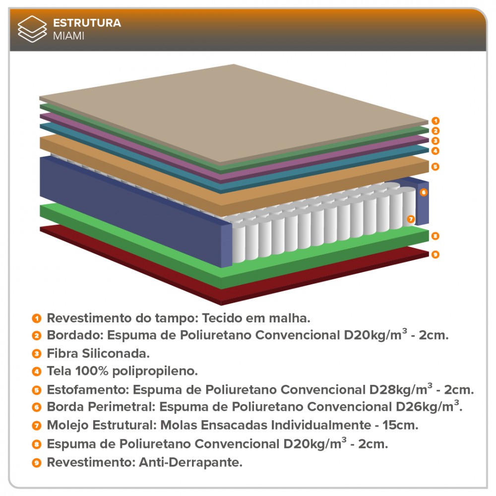 Cama Box Com Baú Solteiro Preto + Colchão Molas Ensacadas Miami 88x188x64cm