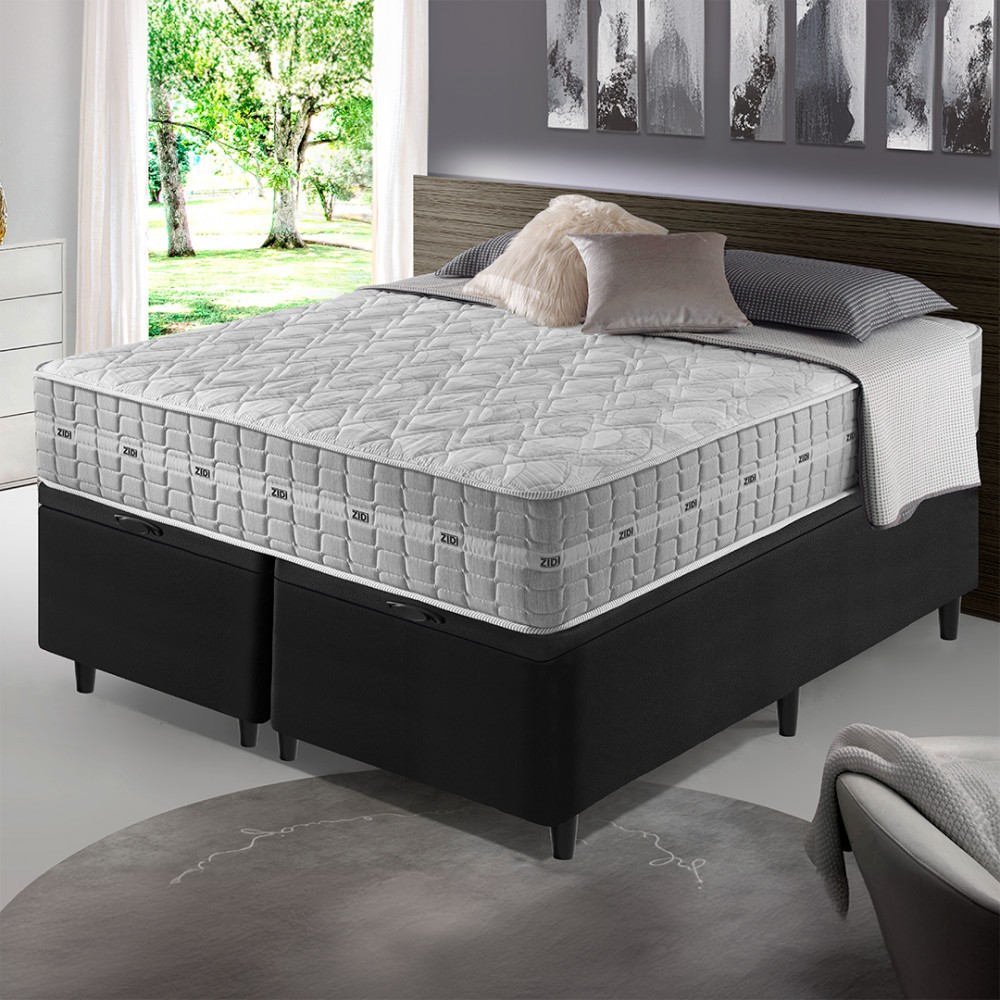 Cama Box com Baú Queen Size Preta + Colchão Molas Ensacadas Alabama 158x198x66cm