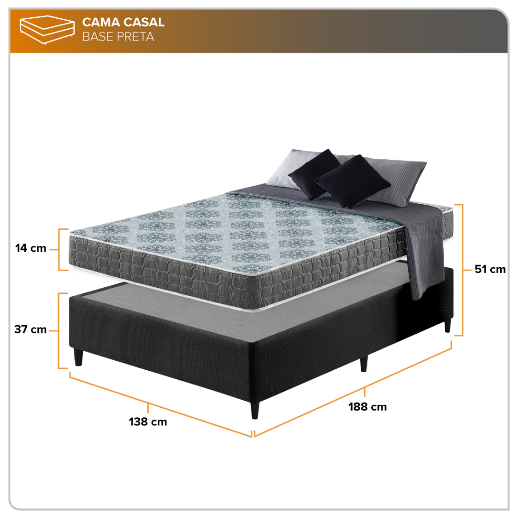 Cama Box Casal Preta + Colchão Washington Espuma D23 Liso 138x188x51cm