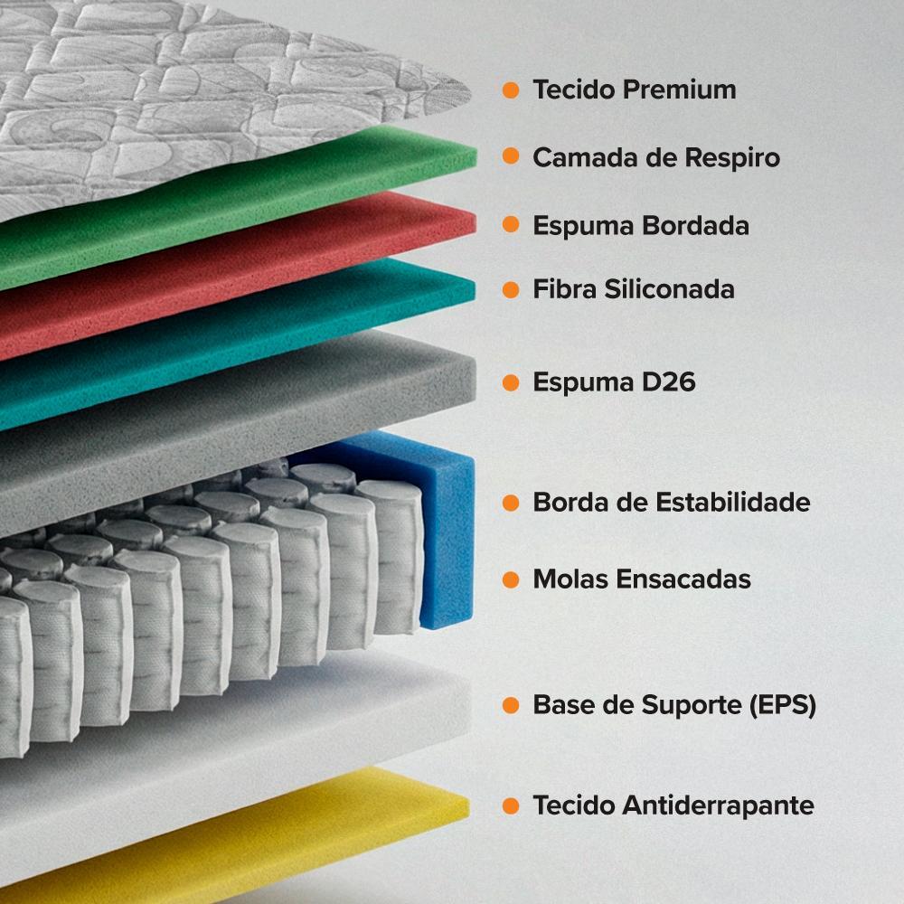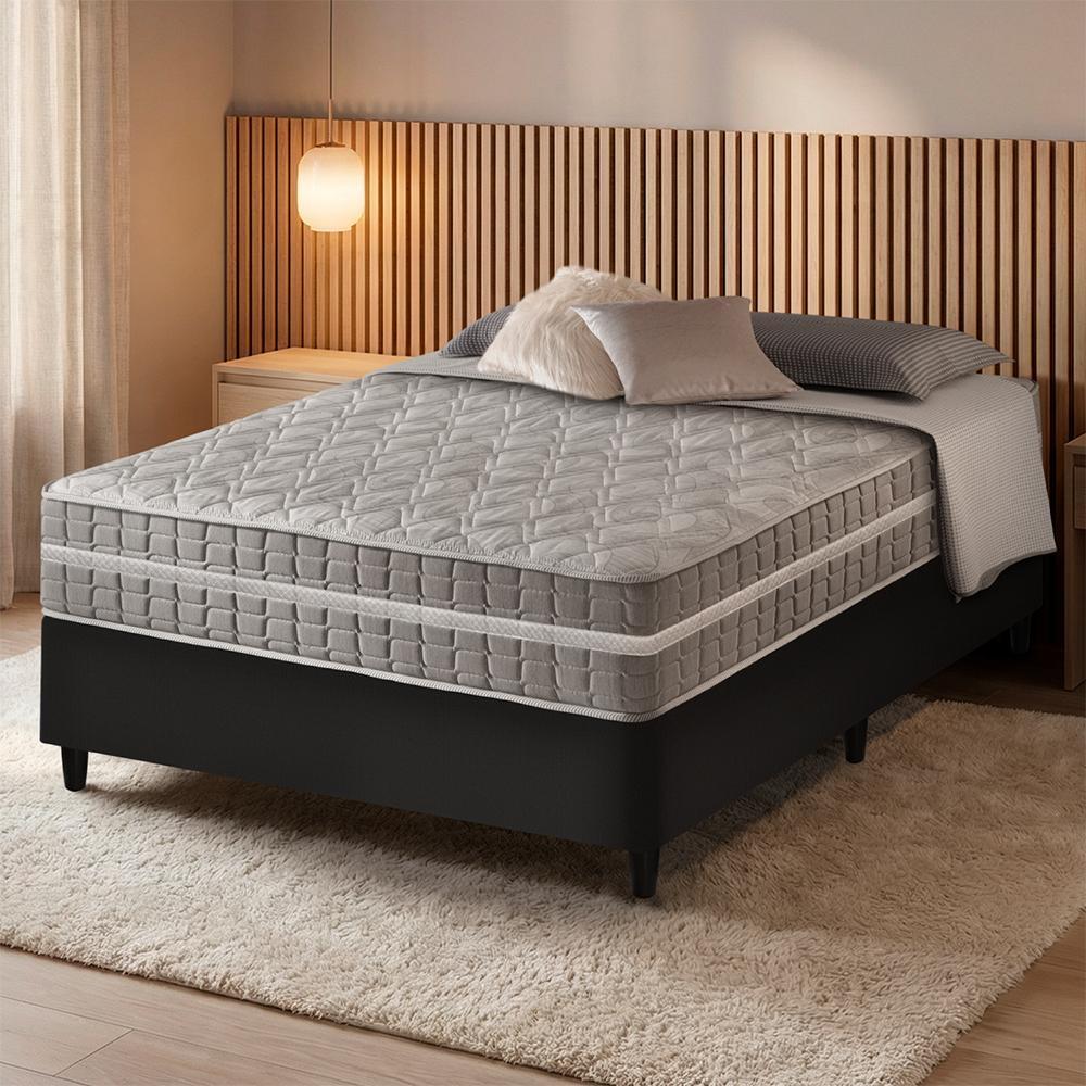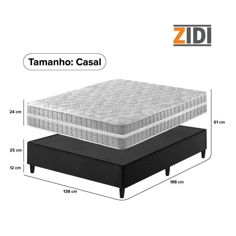 Cama Box Casal Preto + Colchão Molas Ensacadas Zidi Alabama 138x188x61cm