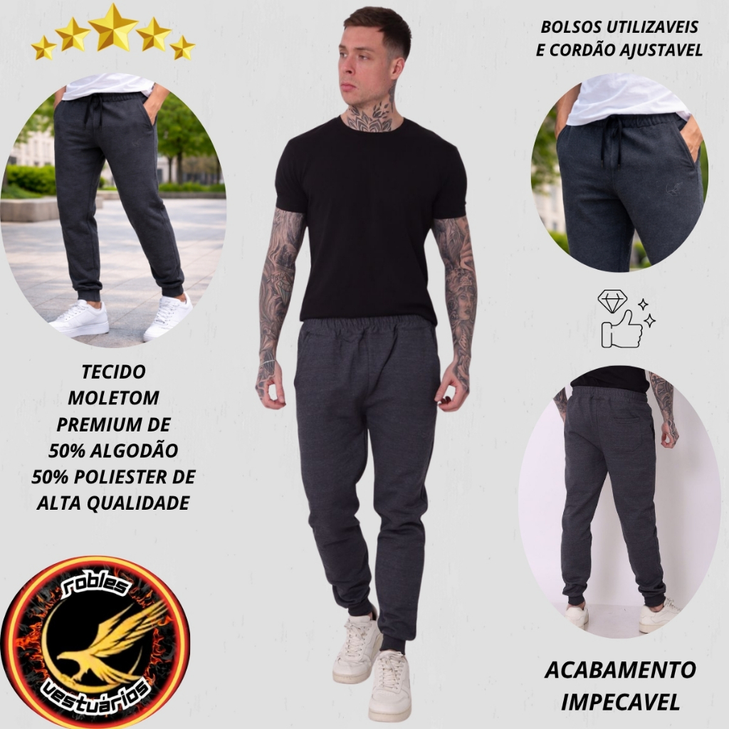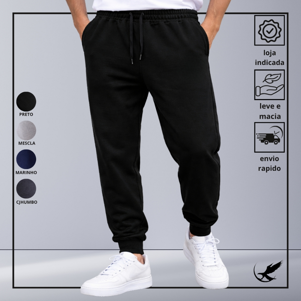 Calça Moletom Jogger Unissex Flanelada Confortável Com Bolsos e Cordão