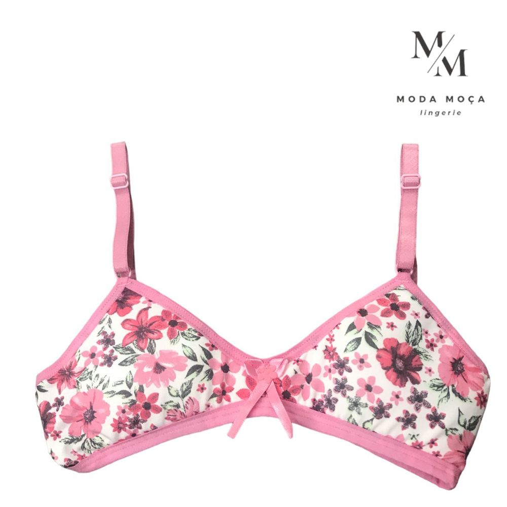 KIT 5 Sutiã Menina Moça Infantil Lingerie Estampado Sem Bojo e Com Espuma