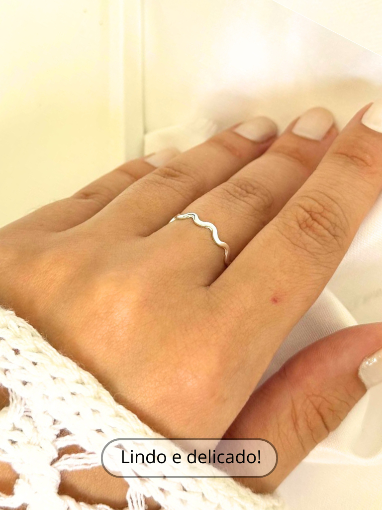 Anel de Prata 925 Legítima Ondulado Ondas Ondinhas Delicado Feminino Alta Qualidade com Garantia