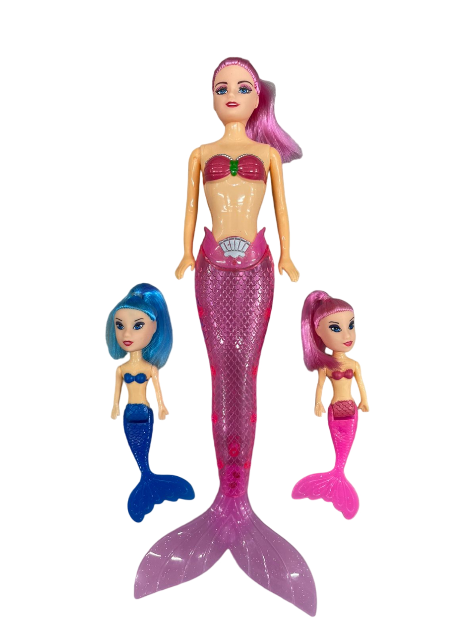 Boneca de sereia + 2 sereia pequena Com Luz brinquedo infantil