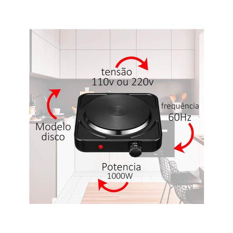 Fogão Cooktop Elétrico NZA 1 Boca Portátil Chapa 1200w