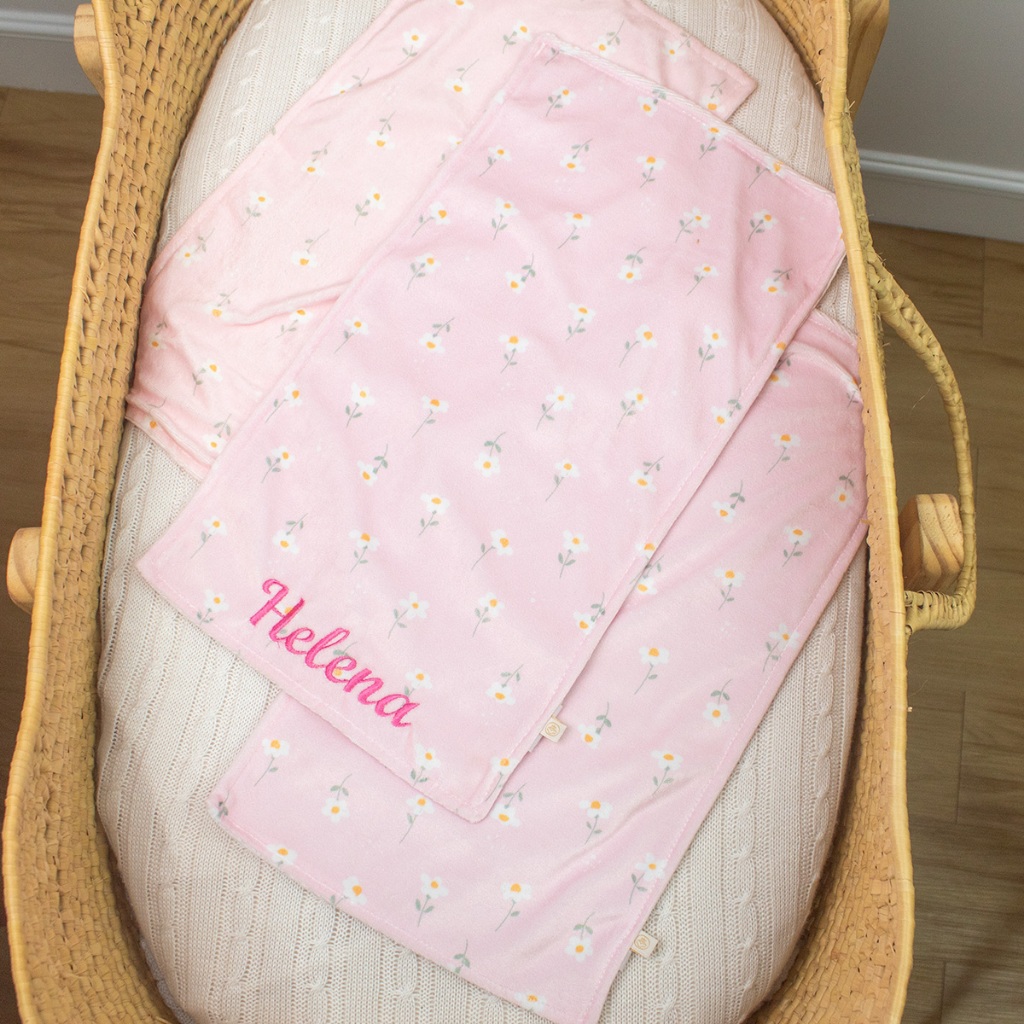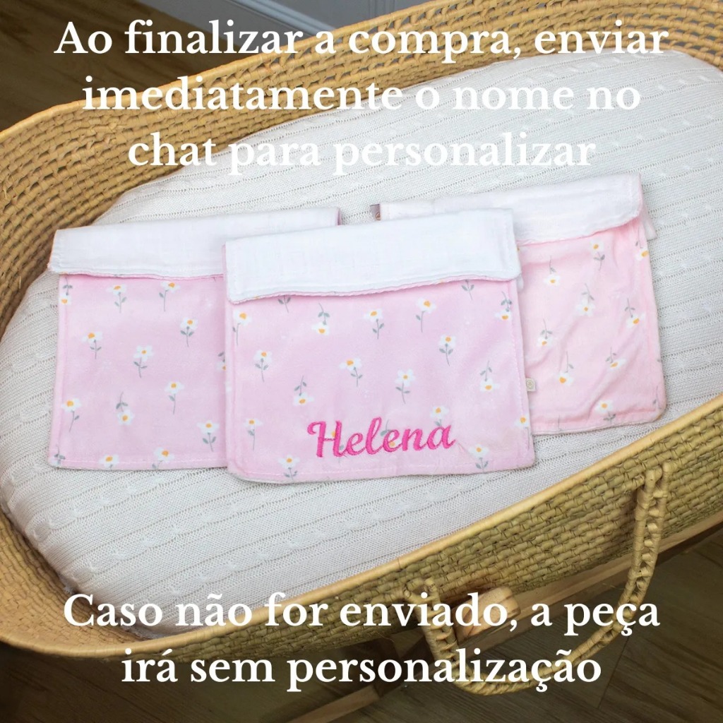 Fraldas de Boca Dupla Face Bebê Menina Personalizadas Bordadas Kit com 3 Unidade 100% Algodão