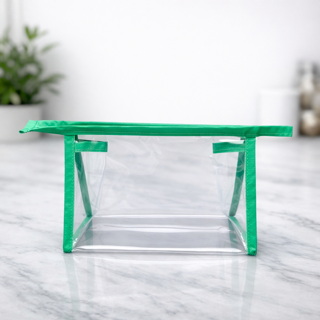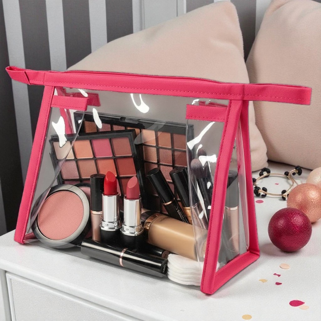 Necessaire Kit 25 peças plástico cristal zíper varias cores