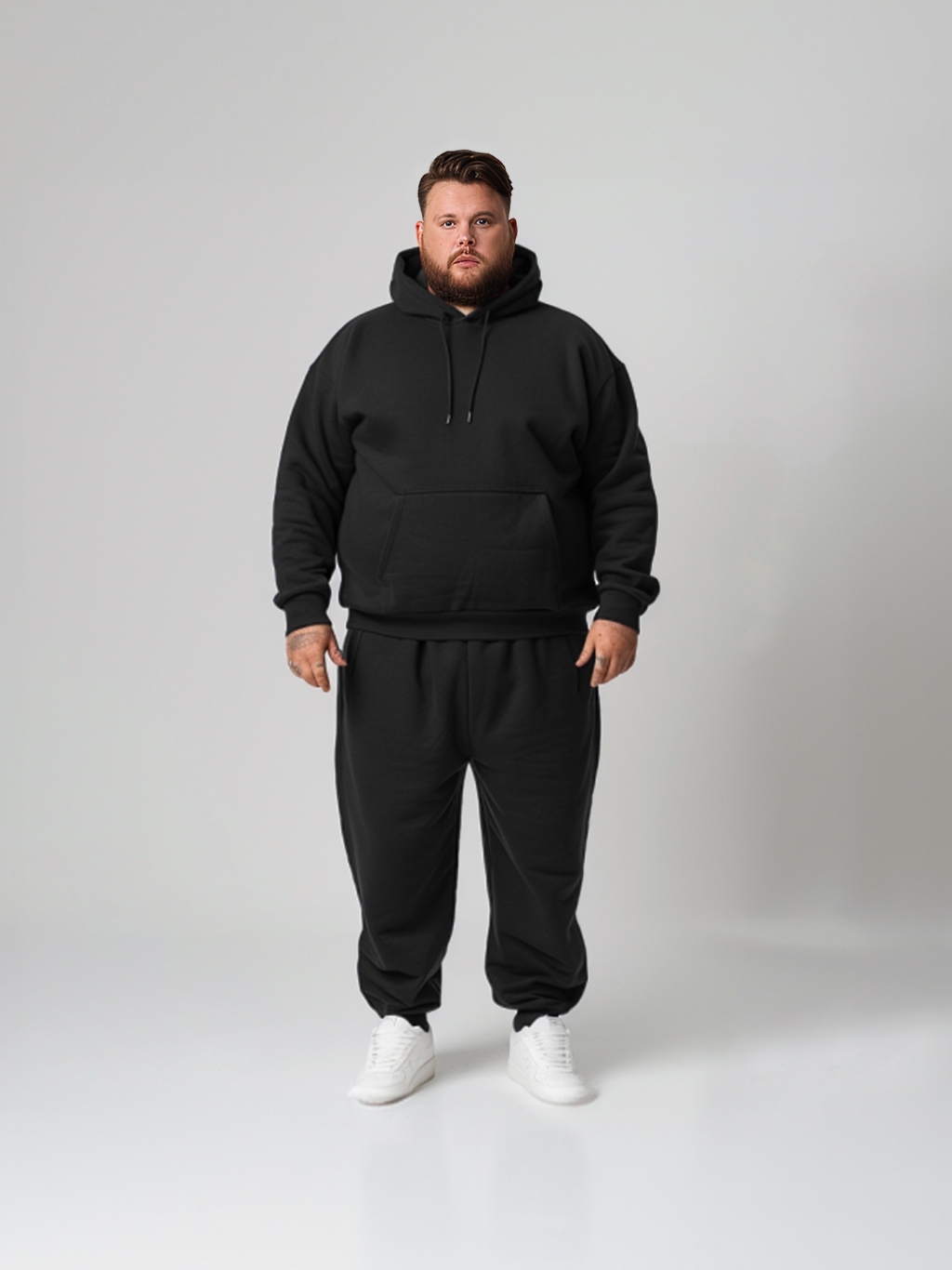 Conjunto Moletom Com Capuz e Calça Moletom Slim Plus Size Masculino Liso Básico