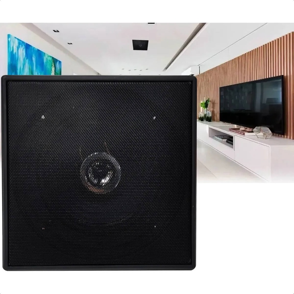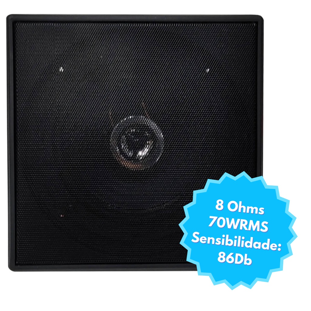 Alto Falante Arandela Quadrada Preta Tweeter 70W para Teto 86Db Leson 2LS078AQP Som Ambiente