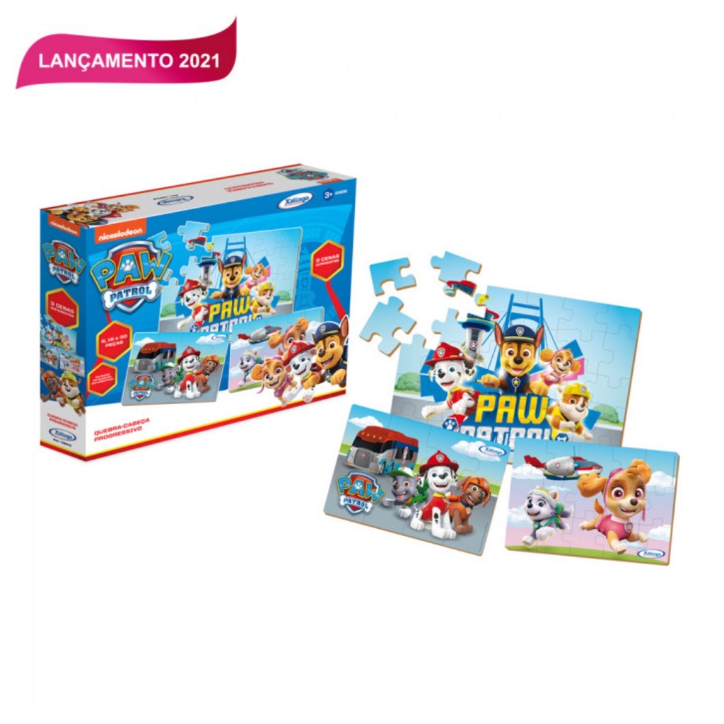 Quebra-Cabeça Infantil Progressivo Patrulha Canina 53 Peças MDF Xalingo 1383.2 Jogo Educativo Puzzle
