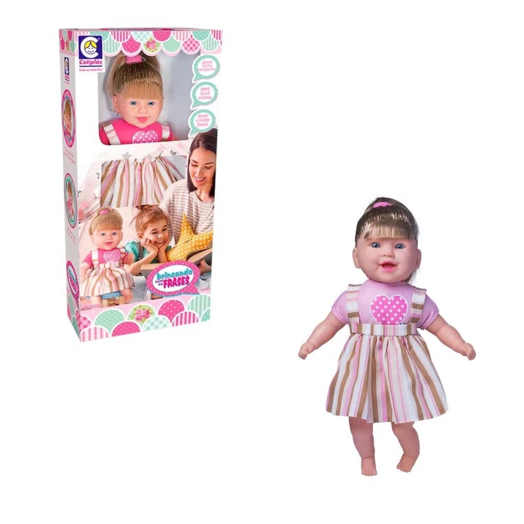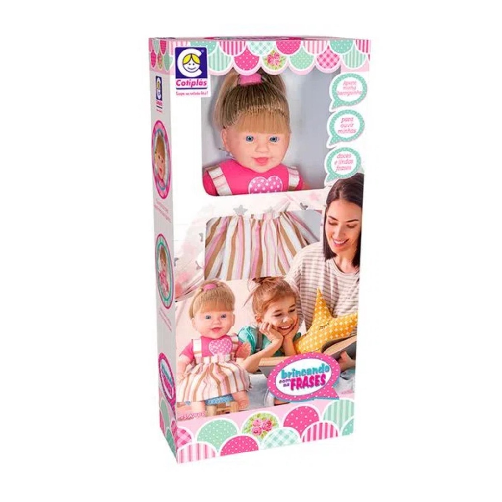 Brinquedo Boneca Falante Plástico Vinil 44cm Produz 115 Frases Diferentes em Baterias Inclusa + 3 anos Cotiplas - 2255