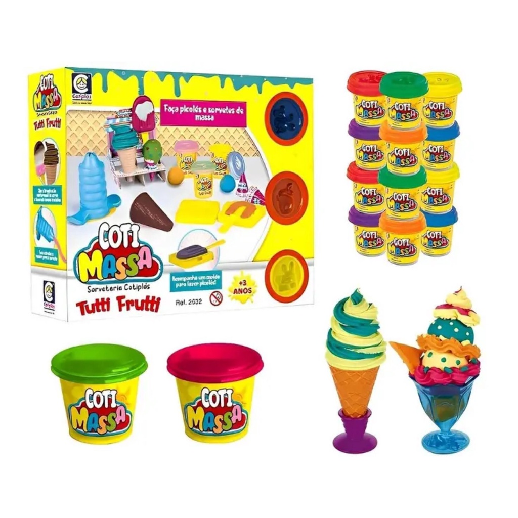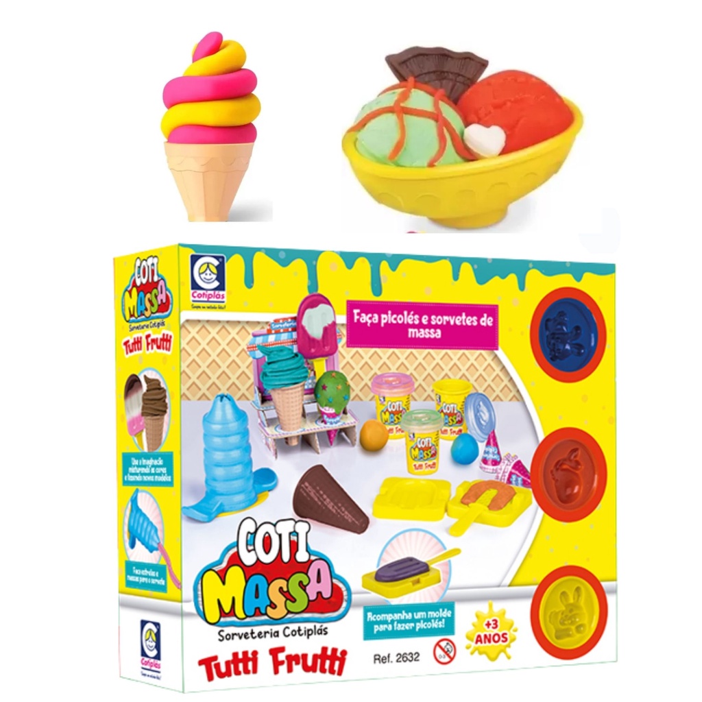 Brinquedo infantil Sorveteria de Massinha Coti Massa Tutti Frutti + Acessórios e Moldes +3 Anos Cotiplas - 2632