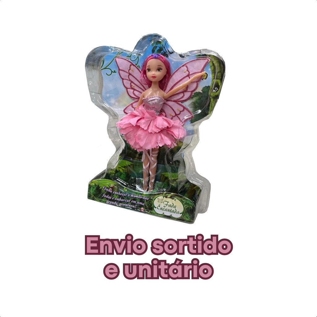 Boneca Fada Encantada Sortida 23 CM Articulada Brinquedo Infantil Asas em Tecido Unitária - Fenix Brinquedos FEN-168