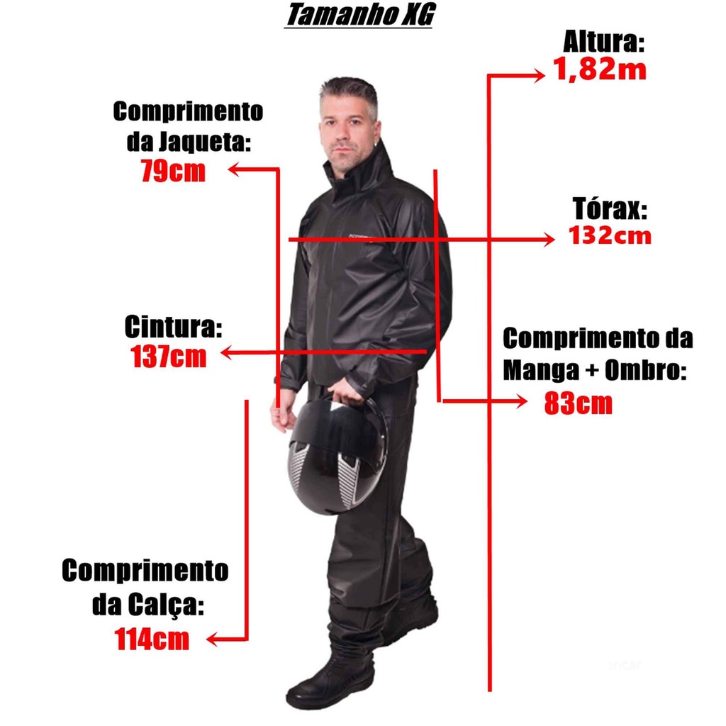 Conjunto Capa de Chuva Pvc XG Combate c/ Capuz Masculino Preto Refletiva Resistente Zíper Pioneira 2901-M-PRE-XG