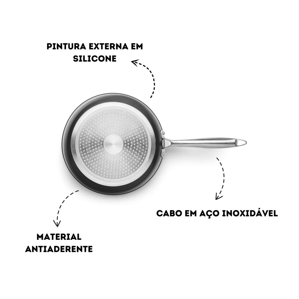 Frigideira Wok Teflon Granito Stone-flon Antiaderente Alumínio Forjado Cor Preto N.26 2,2L 26cm MTA