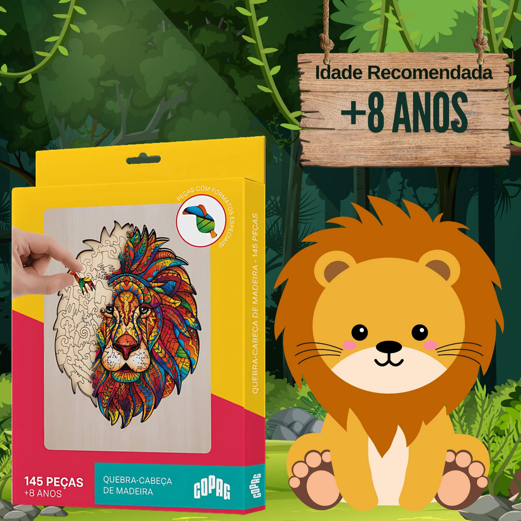 Jogo Quebra-Cabeça de Madeira Estampa Leão com 145 Peças Copag - 33361