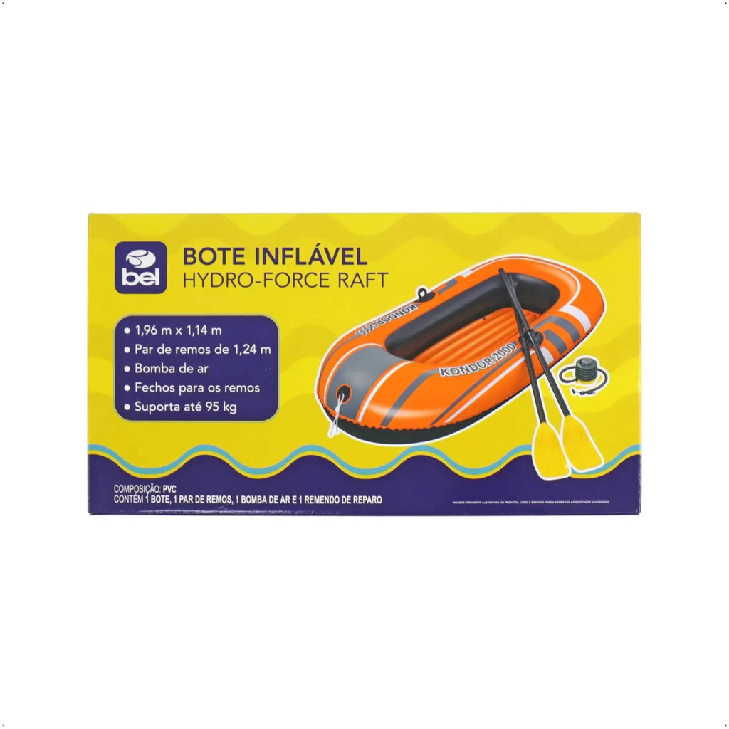 Bote Inflável Hydro-Force Raft Com Remo 1,96 m X 1,14 m + Bomba De Ar Bel 599800