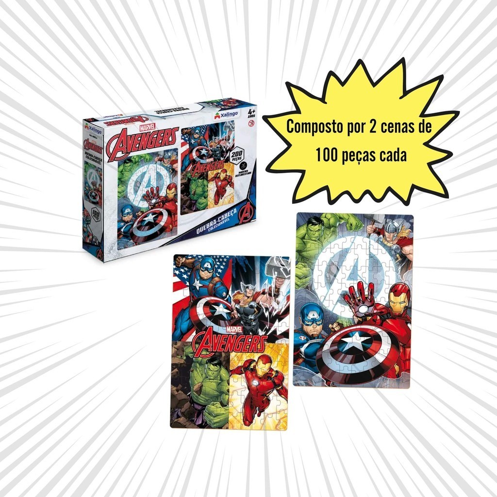 Brinquedo Infantil Quebra Cabeça 2 Cenas Avengers Vingadores 200 peças Xalingo - 68054