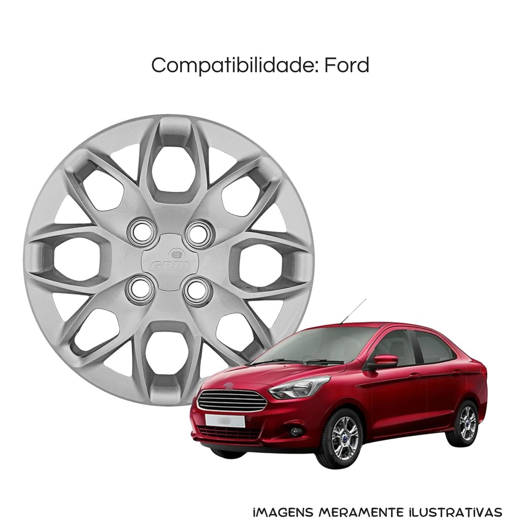 Calota Aro 14" Prata Ford Ka Hatch / Sedan 2015 / 2018 (Jogo c/ 4 Calotas) Grid - 342CB-PTA-E