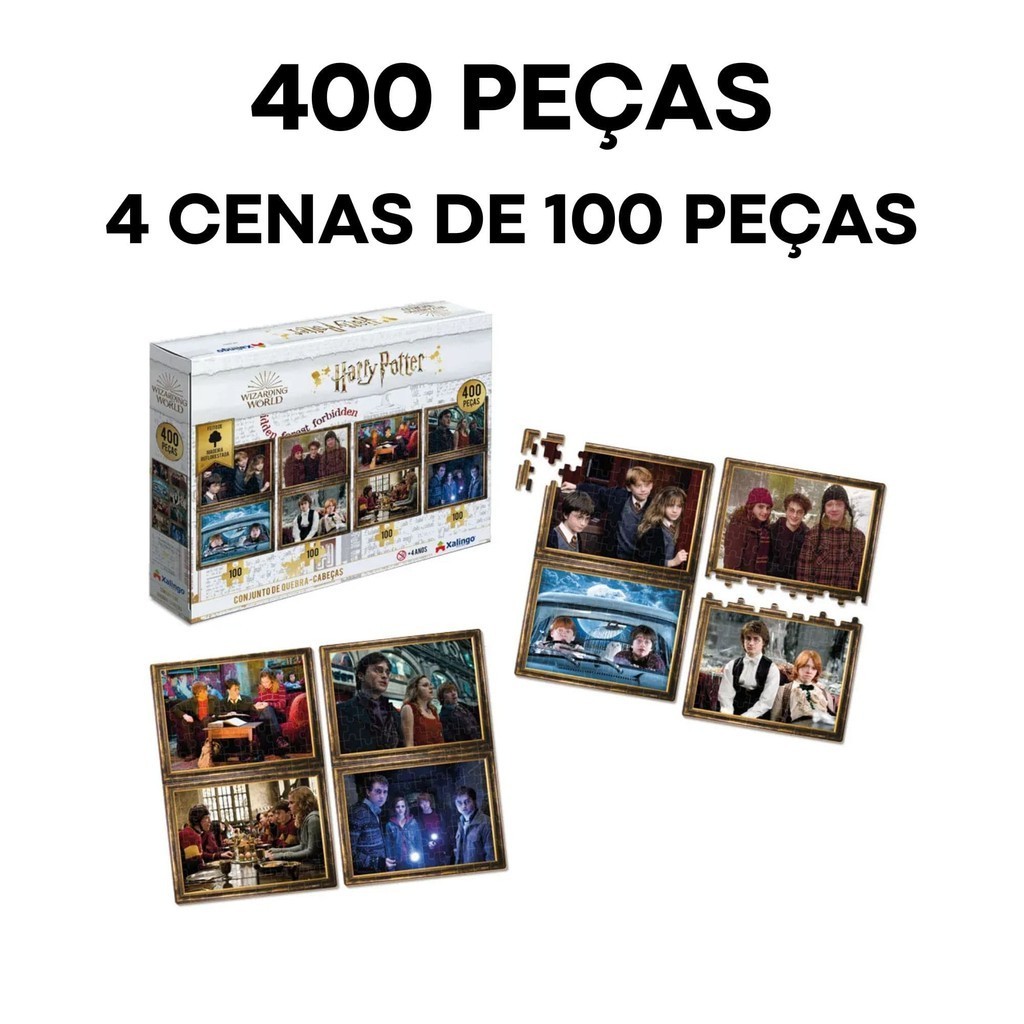 Brinquedo Quebra-Cabeça Puzzle Harry Potter 4X100 Peças - Wizarding World - 400 Peças XALINGO 67976