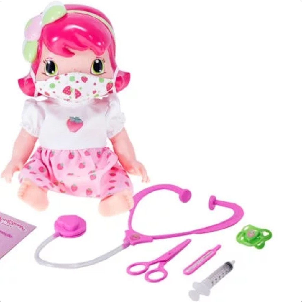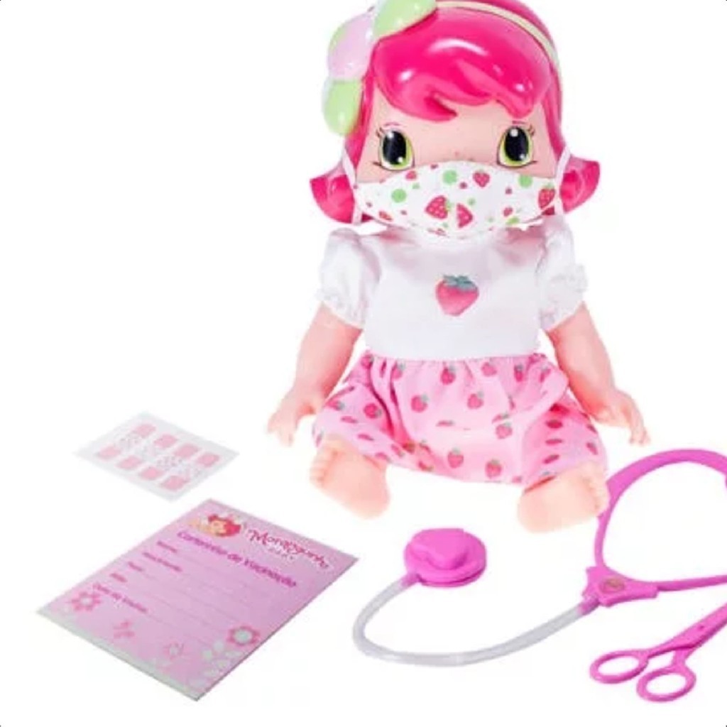 Boneca Baby Moranguinho Dodói Faz Xixi Articulada 30CM 9 Acessórios +De 3 Anos Mimo Toys - 4002