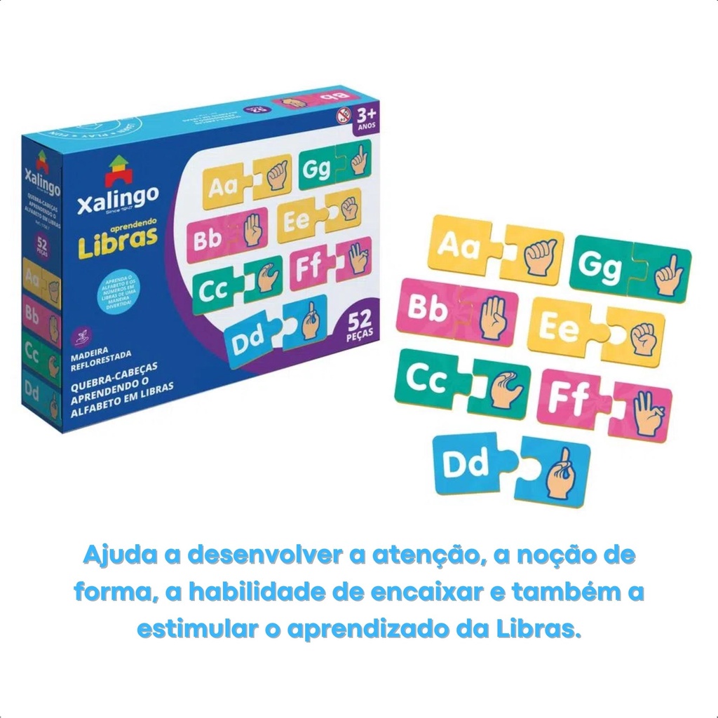 Jogo Quebra-Cabeça Infantil Aprendendo o Alfabeto em Libras com 52 Peças - Xalingo 17587