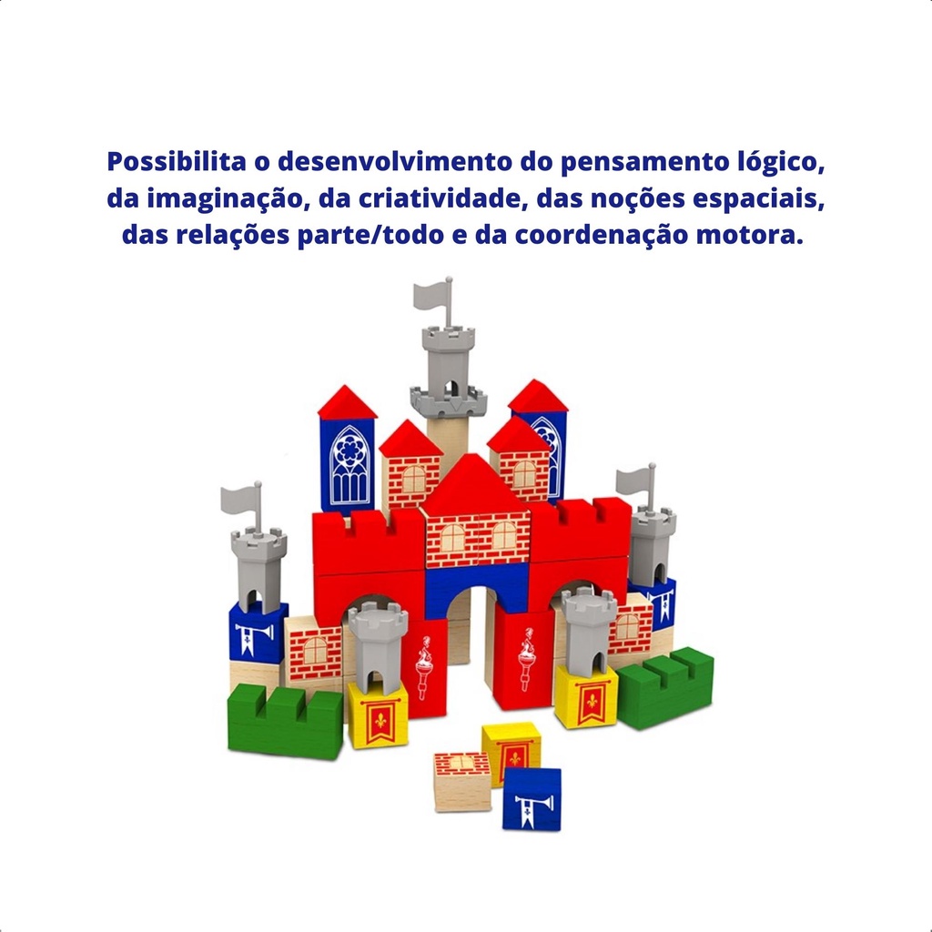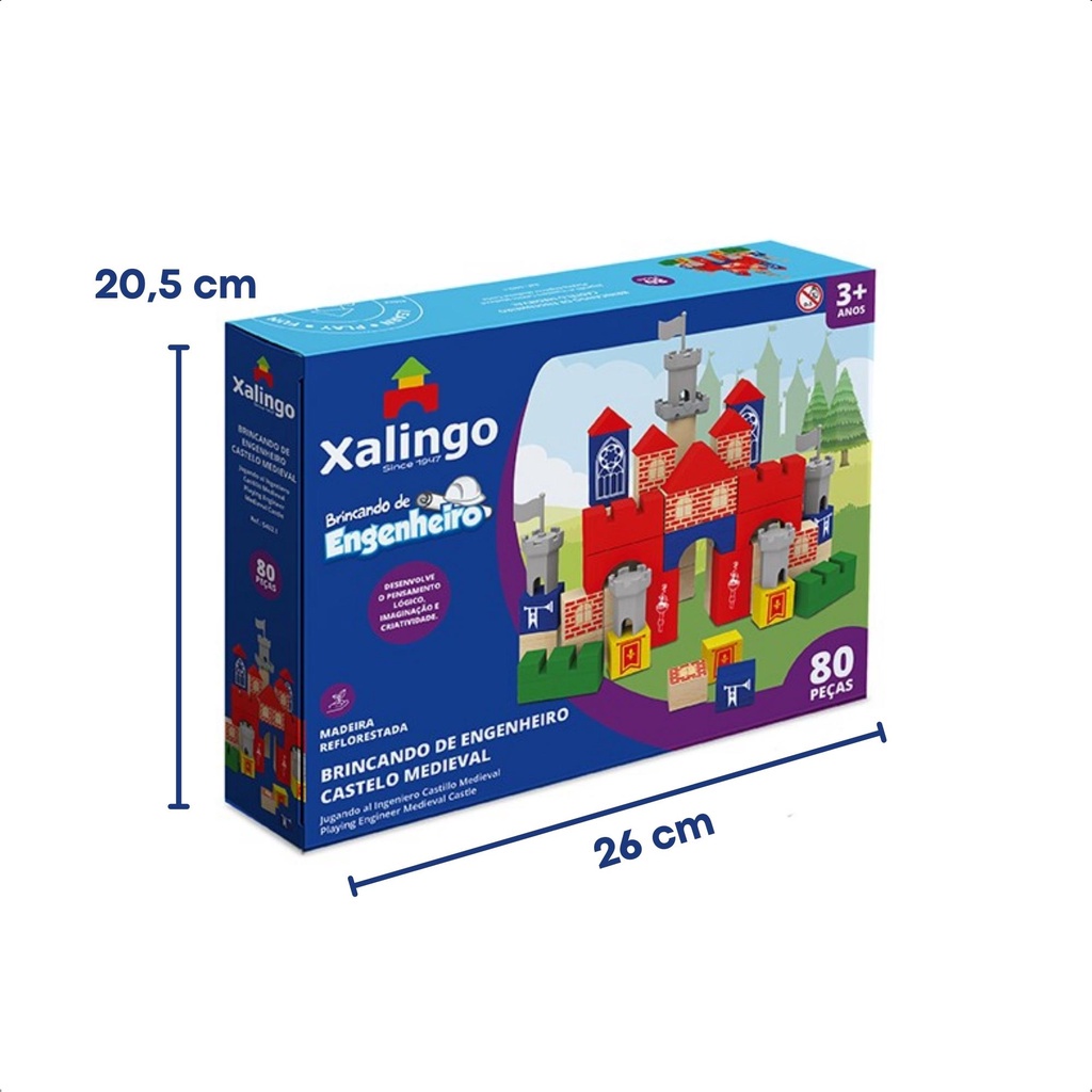 Brinquedo de Montar Brincando de Engenheiro Castelo Medieval 80 Peças Madeira Reflorestada Criatividade - 54621 Xalingo