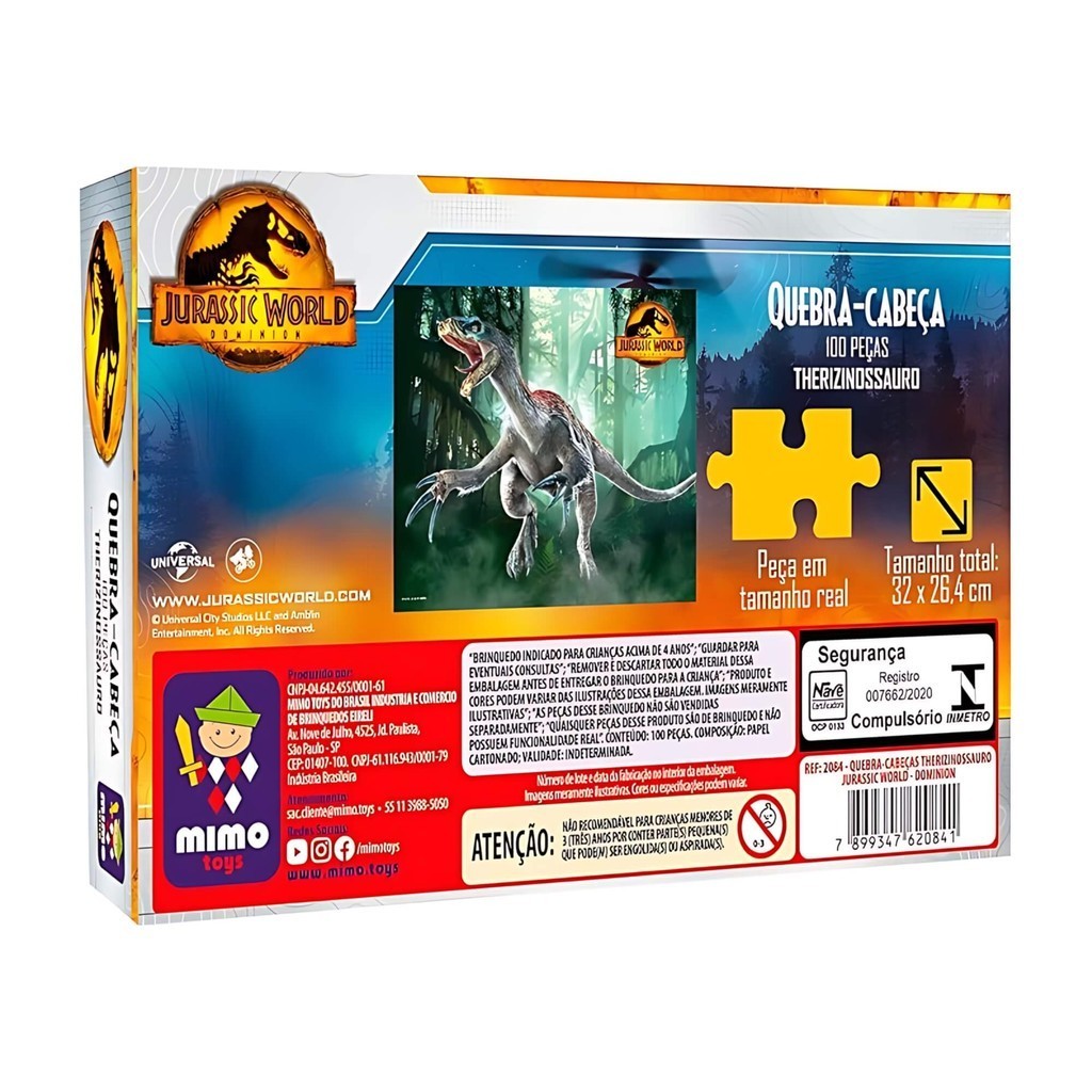 Quebra Cabeça Therizinosaurus Jurassic World 100 Peças Mimo Toys Brinquedo Jogo Infantil Presente