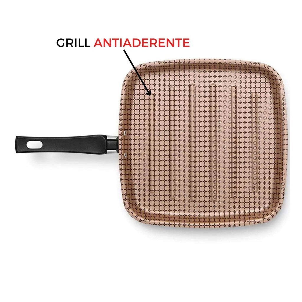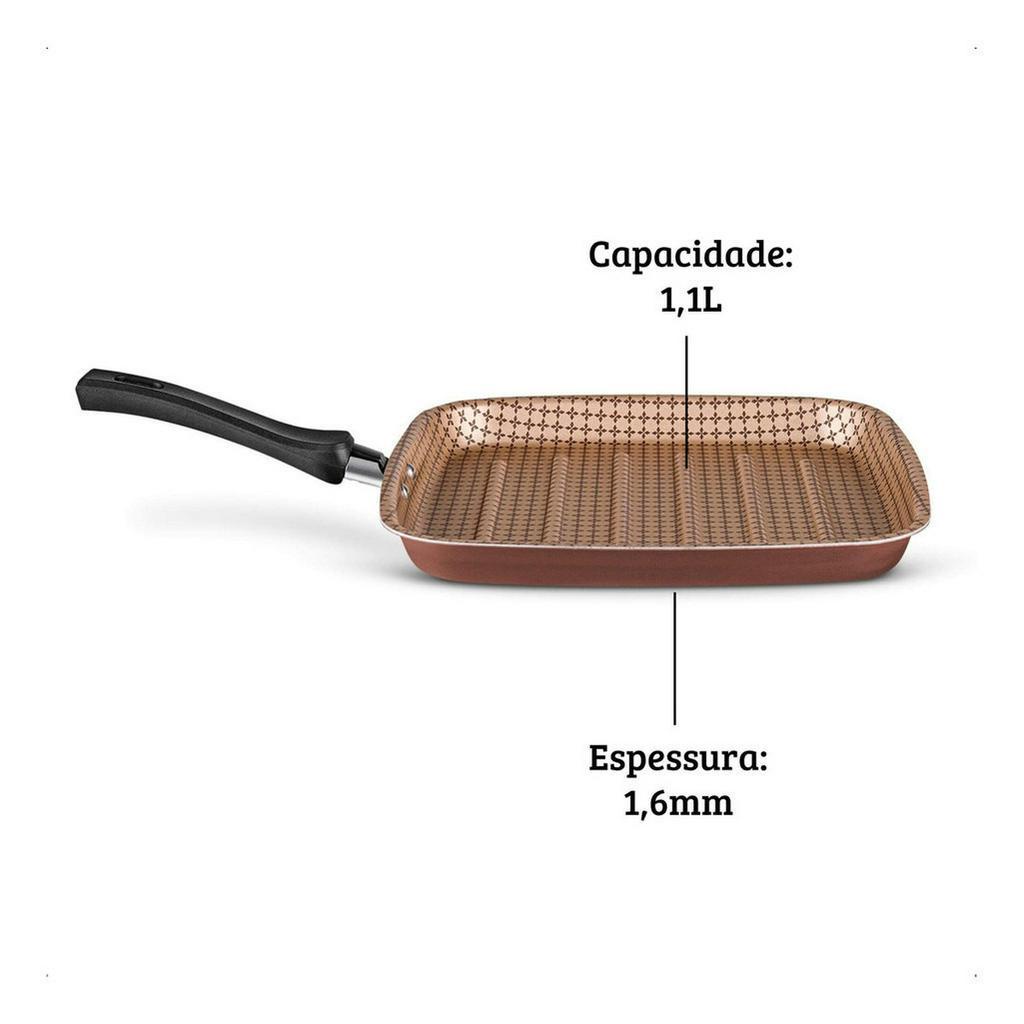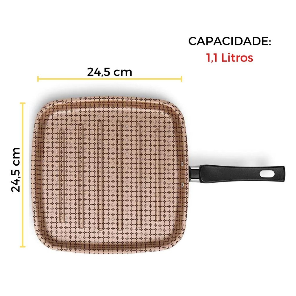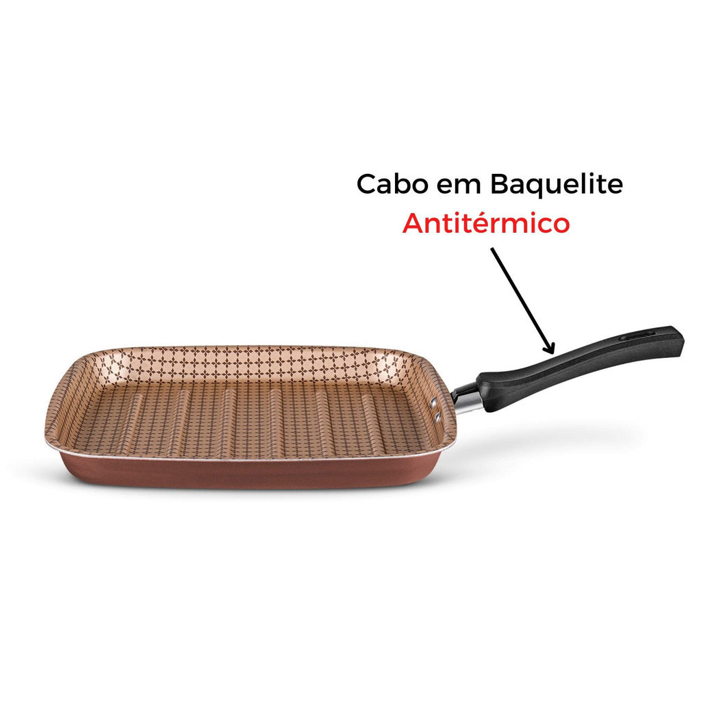 Panela Bistequeira Grill Antiaderente, Grelha Carnes Alumínio Flora Chocolate MTA - 8713