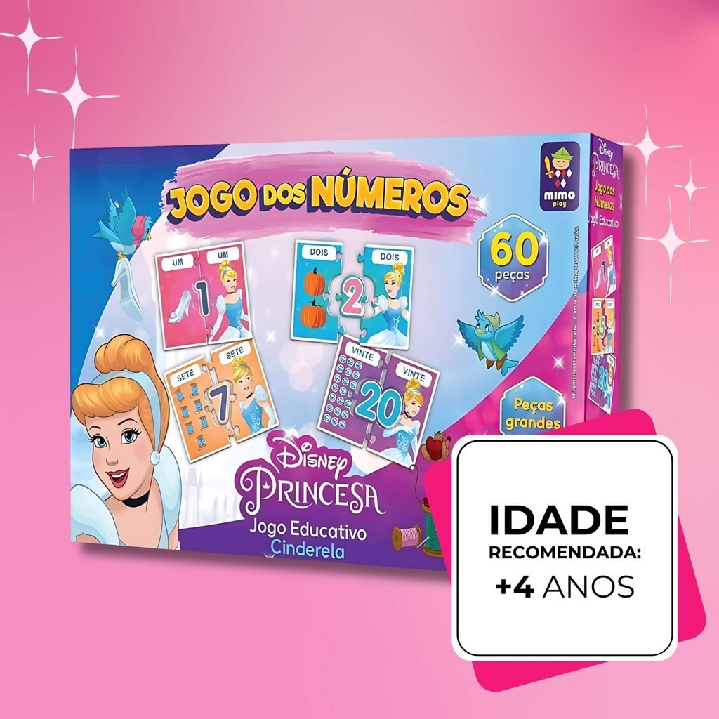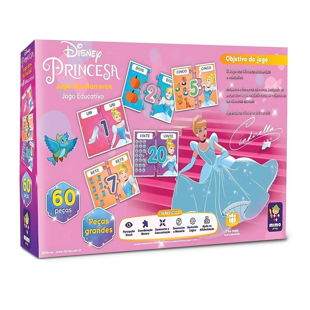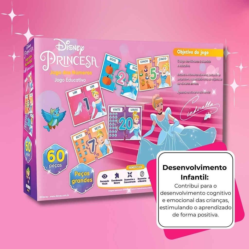 Jogo Educativo dos Números Disney Princesas Cinderela Mimo Toys Desenvolvimento Infantil Criança