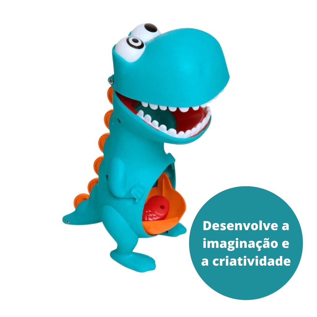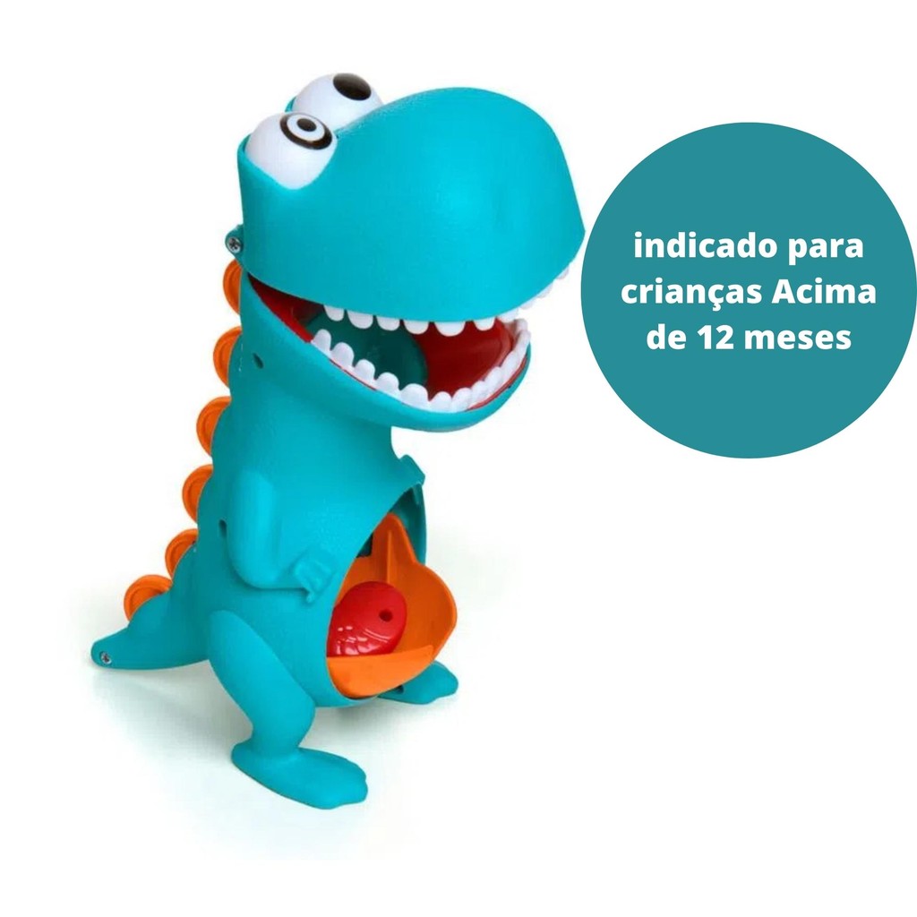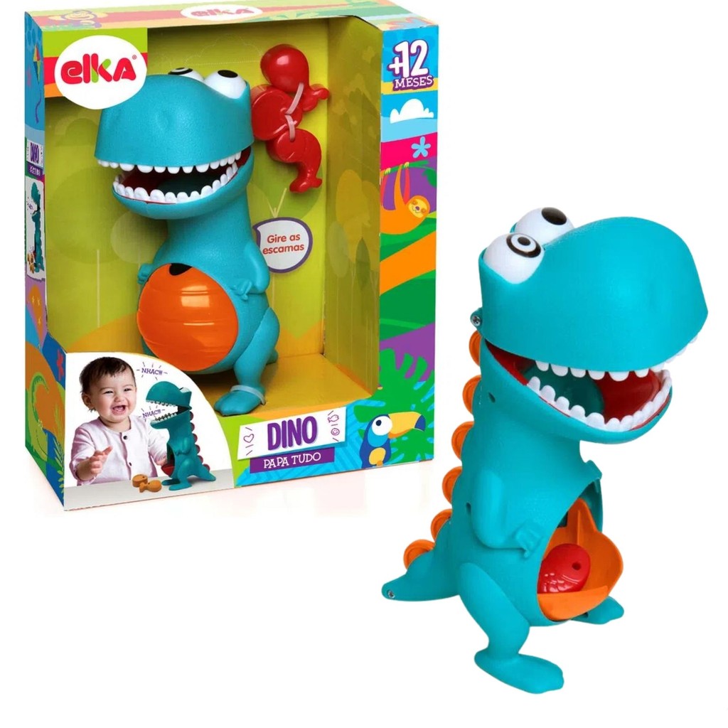 Brinquedo Infantil Boneco Dino Papa 23cm + Acessórios, Boca Abre e fecha + Comidinhas Elka - 972