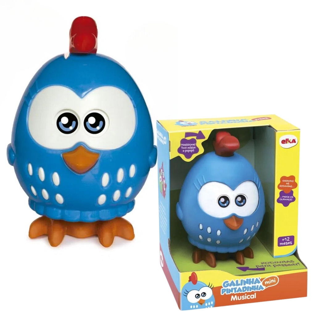 Brinquedo Boneca Galinha Pintadinha Mini Musical 20cm em Plástico com Rodinhas Quando Anda Seus Olhos Mexem Elka - 1044