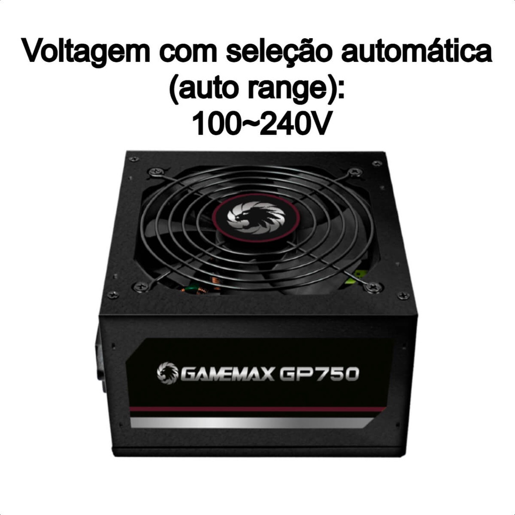 Fonte Gamer ATX 750W Silenciosa Ventoinha 80 Plus Bronze 50-60Hz Auto Range 110-240V Gamemax GP750