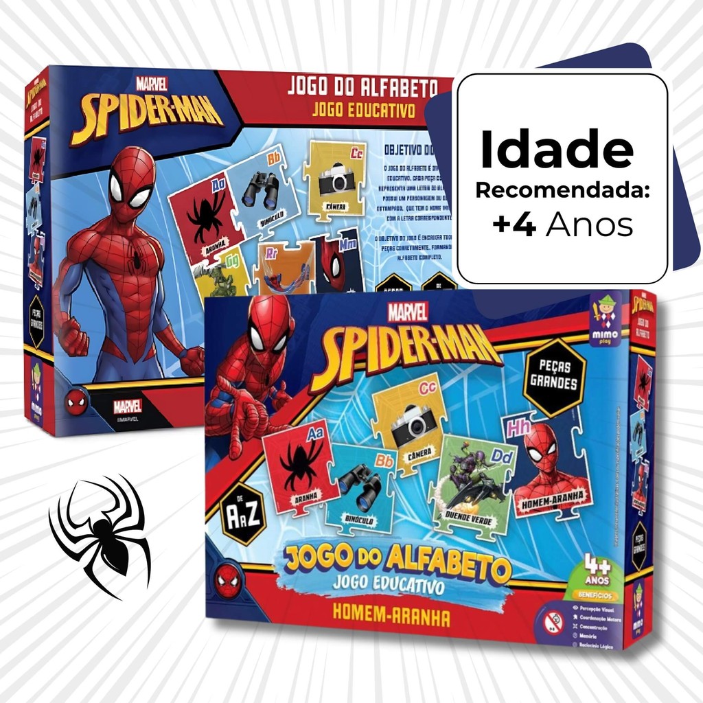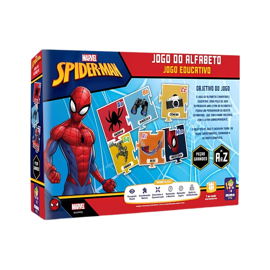 Jogo Educativo Alfabeto Homem Aranha Marvel Mimo Toys Infantil Desenvolvimento Criança Presente